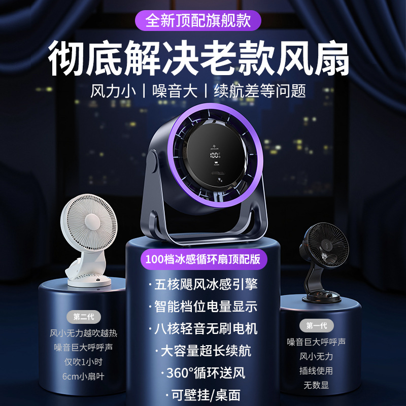 桌面小风扇壁挂台式两用大风力数显办公室桌面风扇学生宿舍电风扇 1台