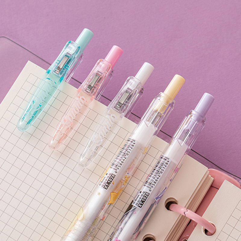 散装卡通ST头按动中性笔透明高颜值学生写字考试笔办公签字黑笔 6支