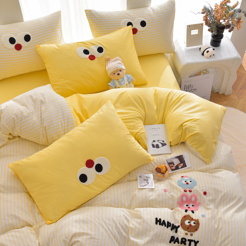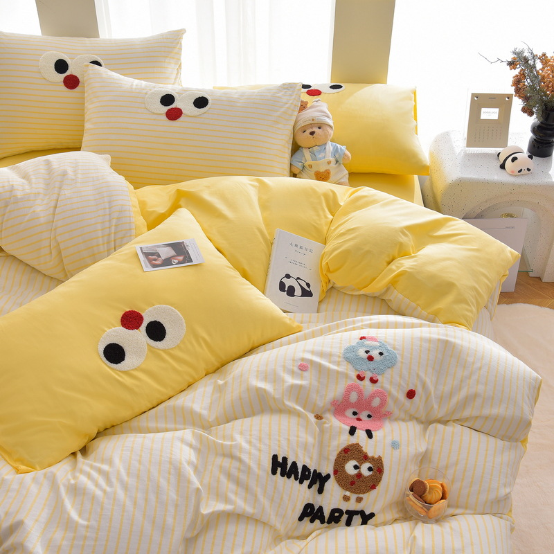 2025新款A类全棉60支水洗棉毛巾绣四件套-卡通多巴胺床品套件 1套