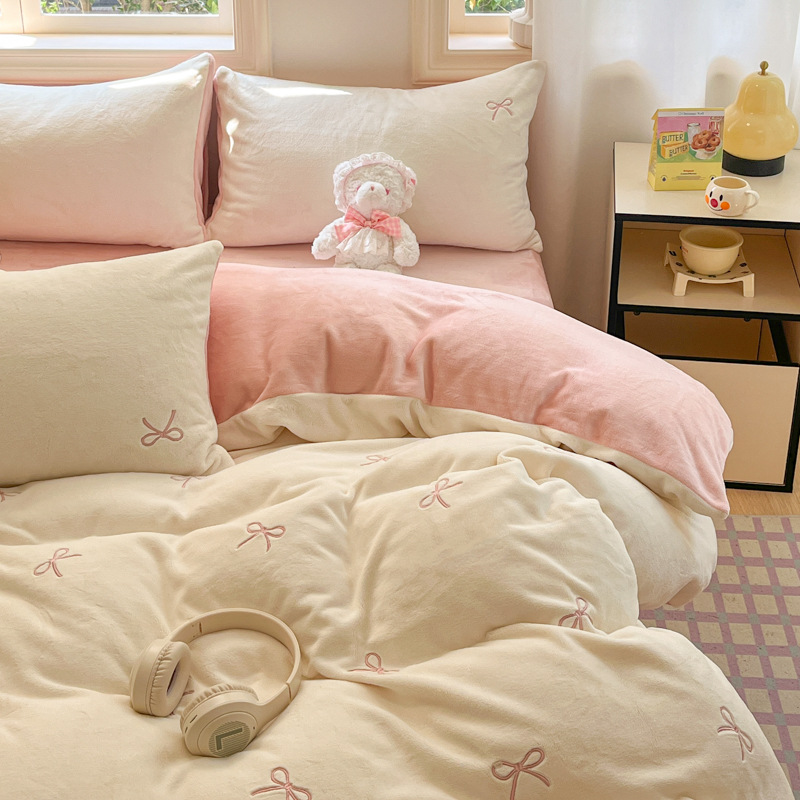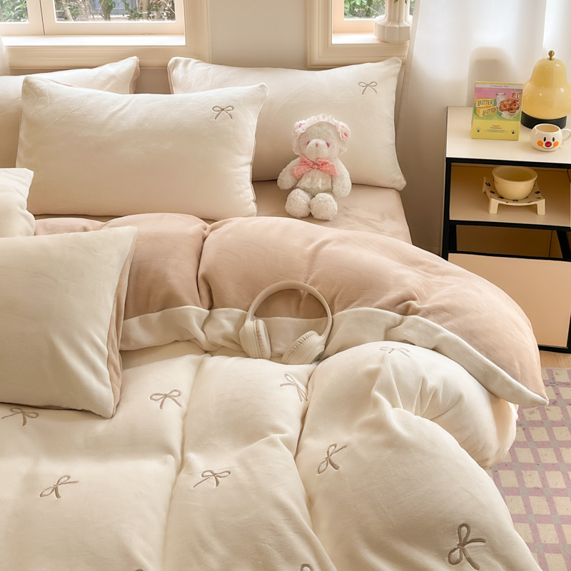 牛奶绒床上四件套2025新款床品冬季双面珊瑚法兰绒床单被套三件套 1套
