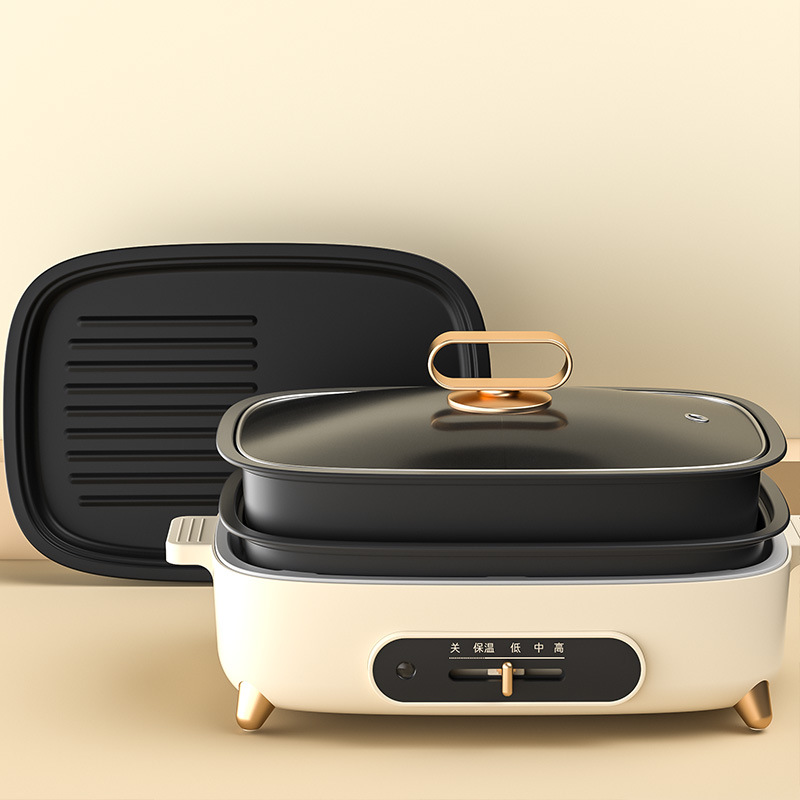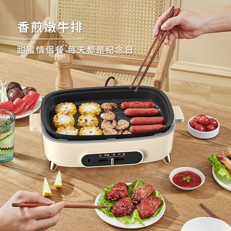 爆款多功能料理锅分体式火锅烧烤煮煎双盘两用电火锅礼品便携 1件