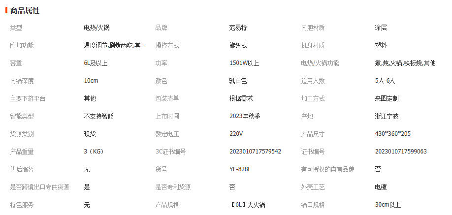 礼品出口6L大容量大火锅煎烤炖煮一体锅电煮锅多功能大锅电热火锅 1件