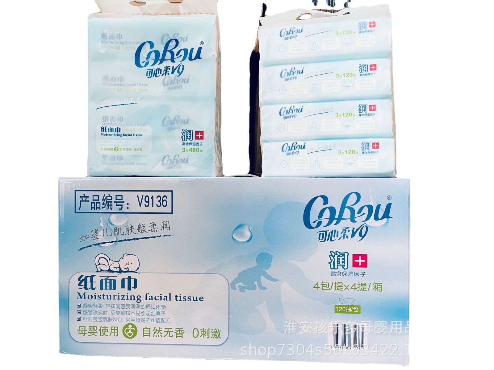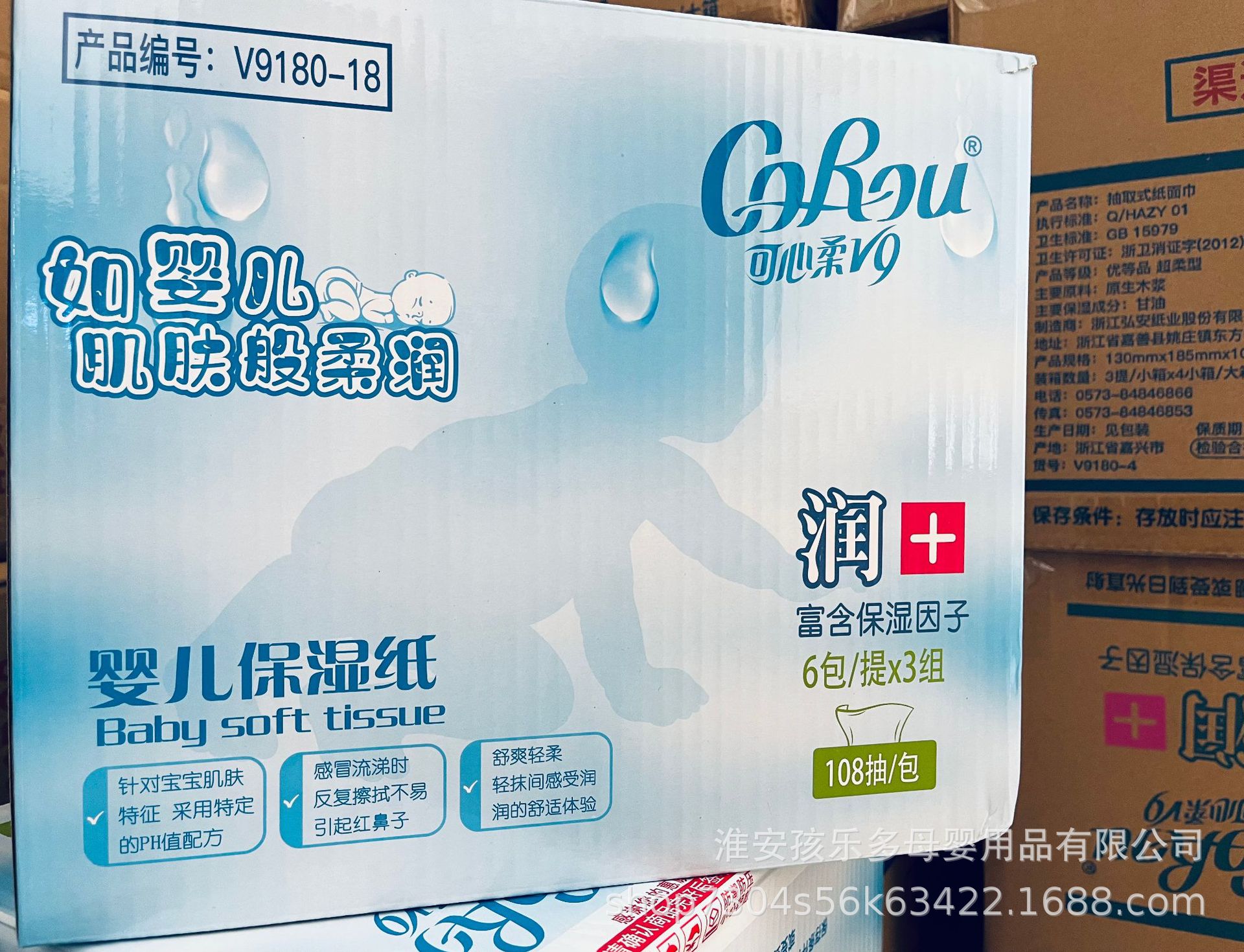 可心柔V9润+系列婴儿抽纸宝宝超柔纸婴幼儿云柔巾保湿纸【现货】 3箱
