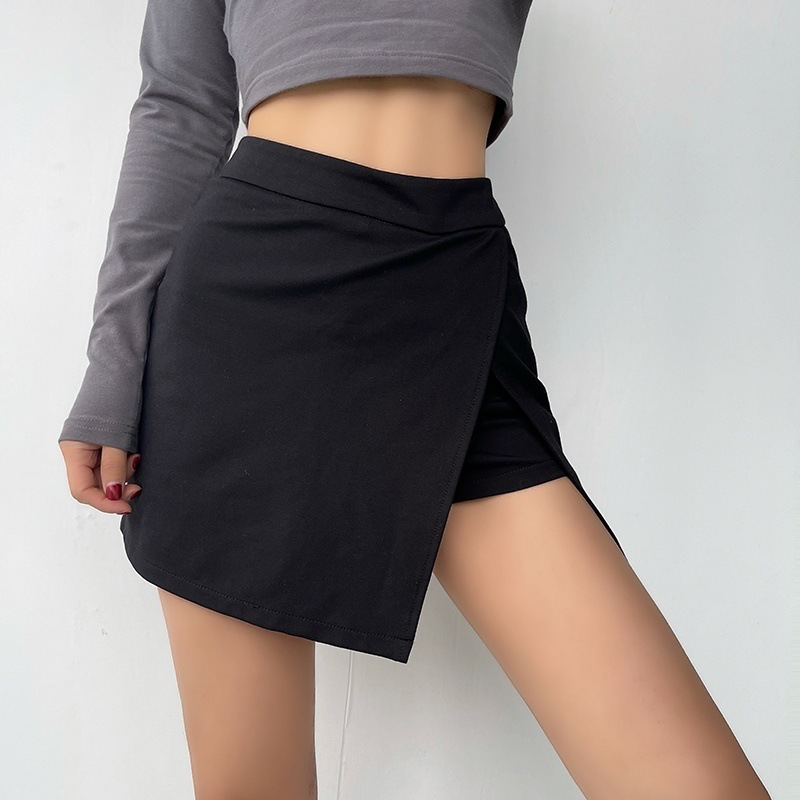 大码女装胖mm高腰短款纯色侧开叉防走光短裙半身裙不规则a字裙裤 2件