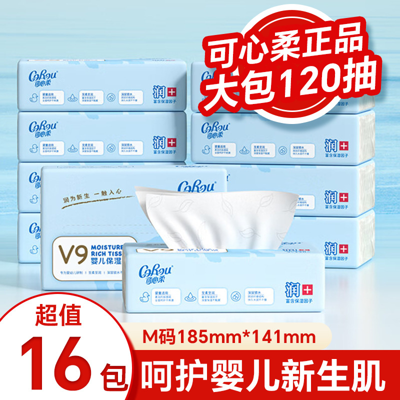 可心柔婴儿保湿纸120抽M码16包宝宝纸面巾乳霜纸柔纸巾云柔巾 1件