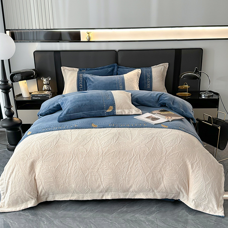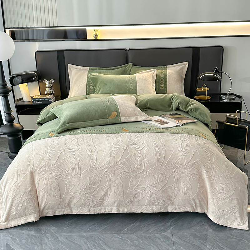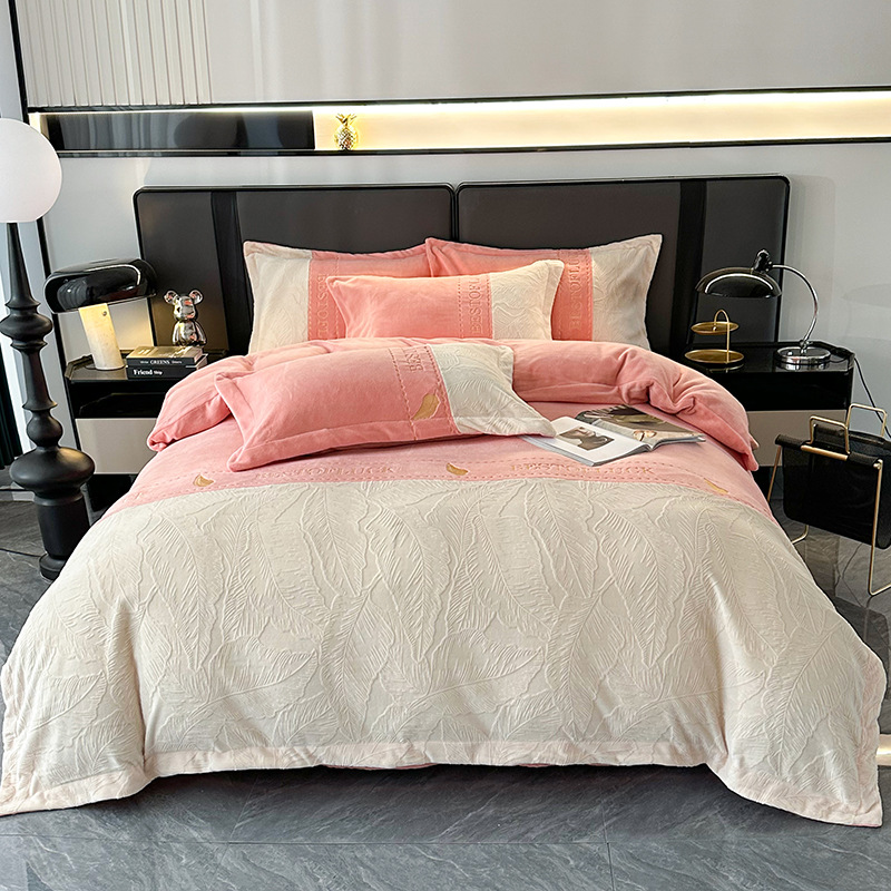 a类雕花牛奶绒四件套冬季加厚保暖高级感床单被套珊瑚绒床上用品 1套