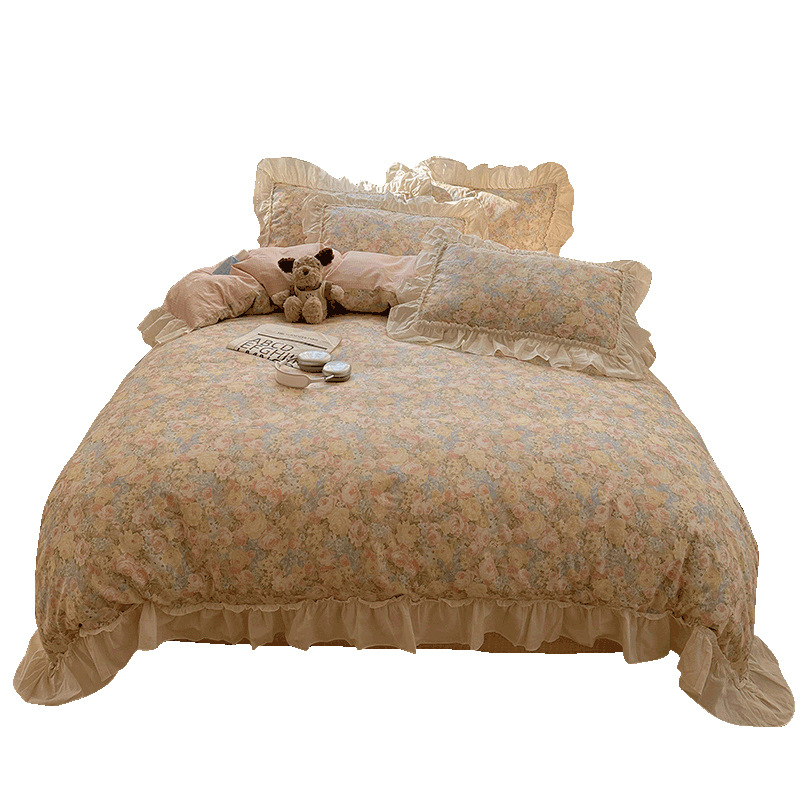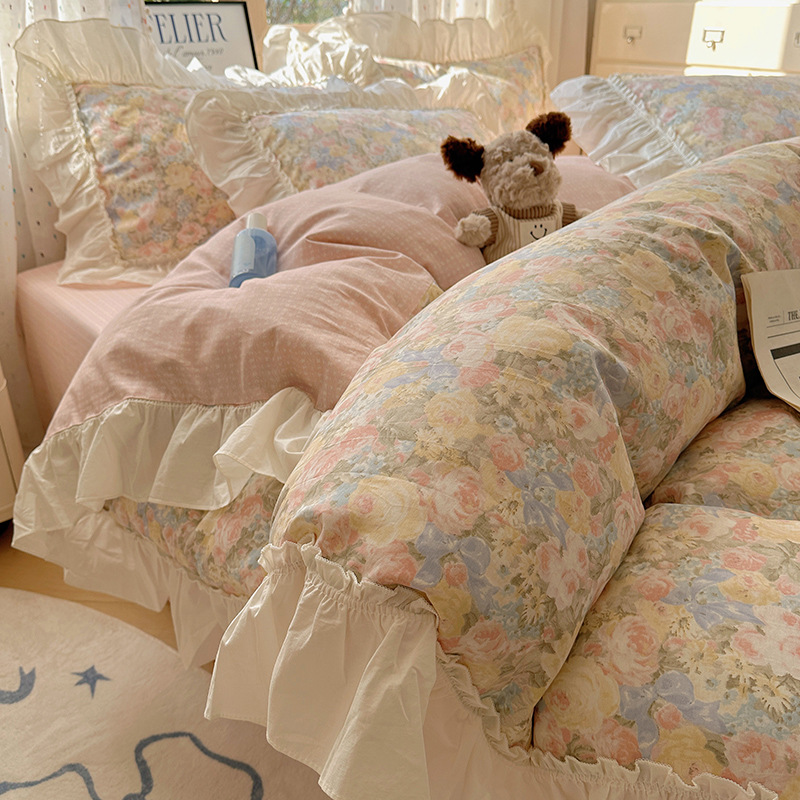 新款纯棉韩版花边四件套 全棉100棉床单被套三件套床笠款被罩床品 1套