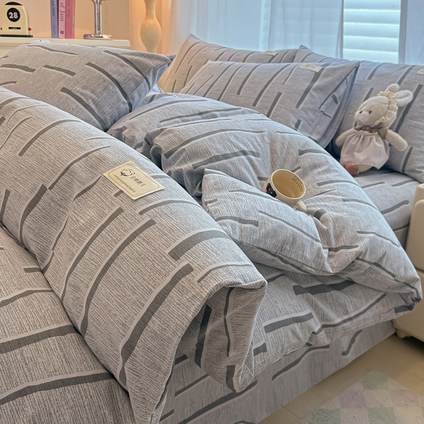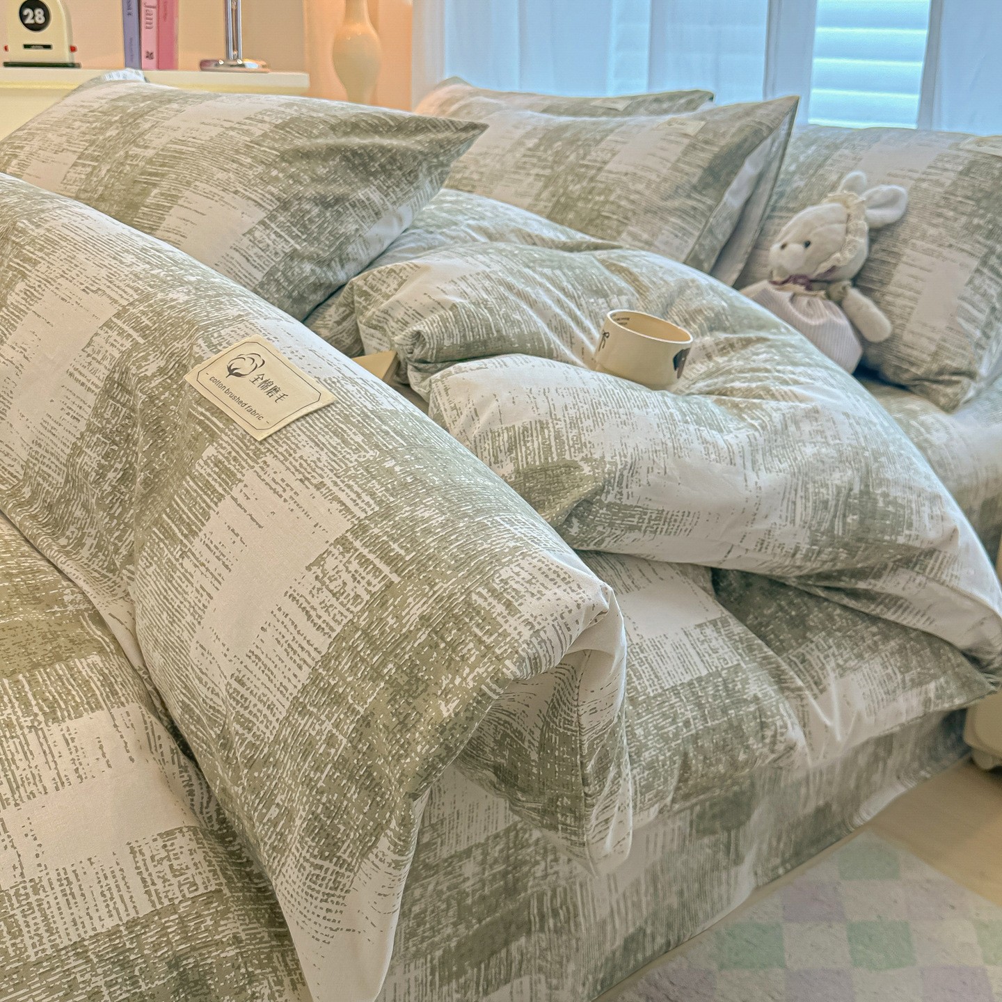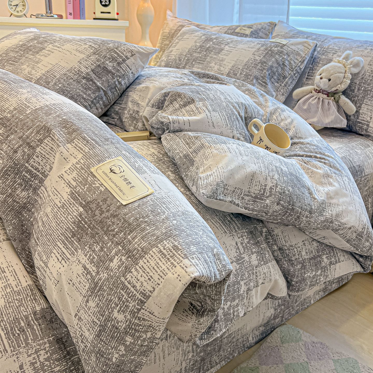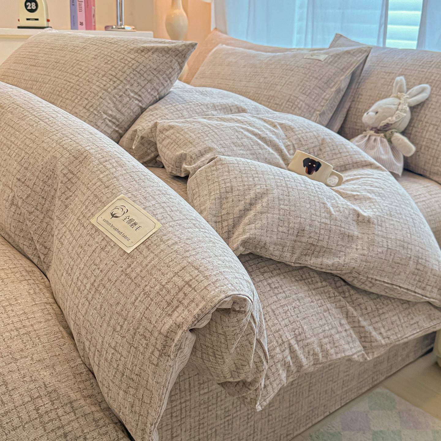 A类无印风纯棉磨毛四件套秋冬加厚床单被套全棉宿舍三件套床笠款 1套