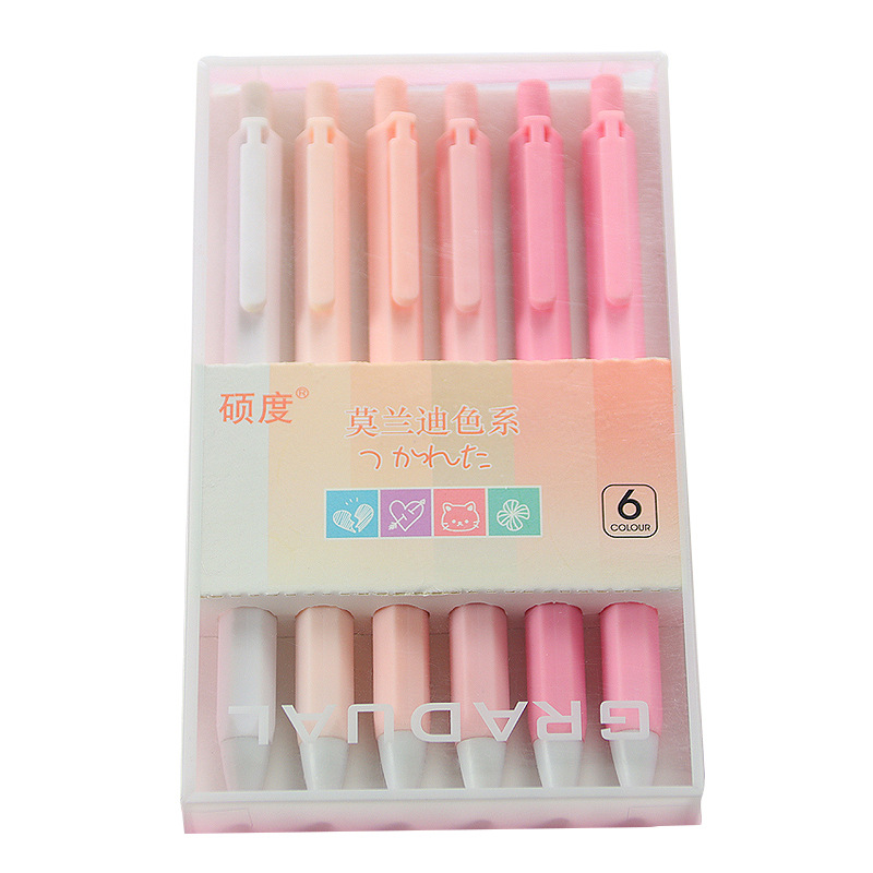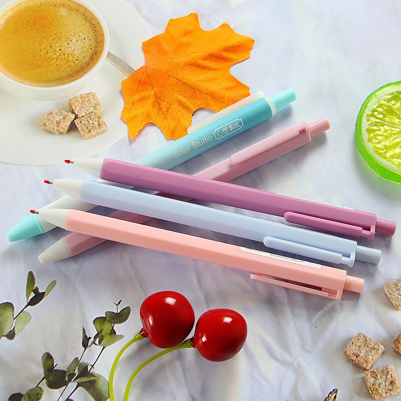 创意莫兰迪色按动笔正姿六角杆按压中性笔套装学生文具水笔签字笔 1盒