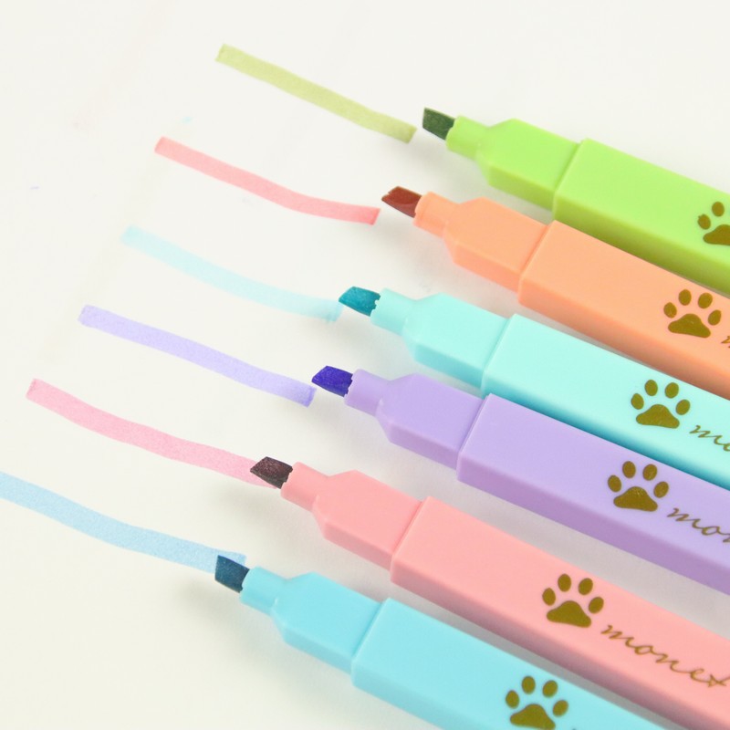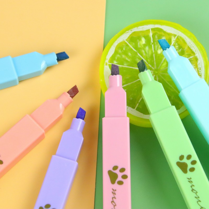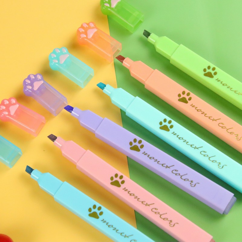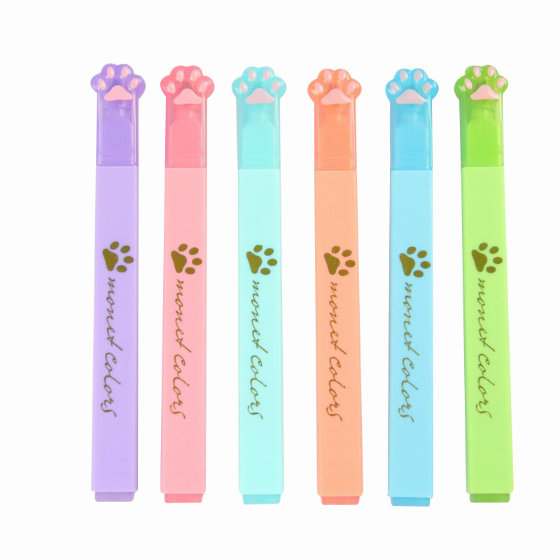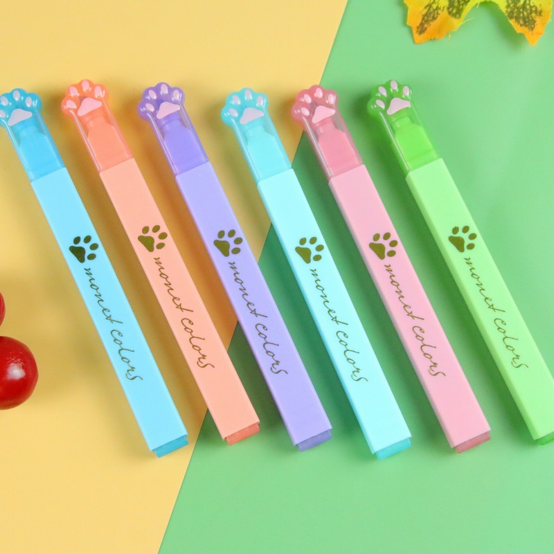 盒装猫爪荧光笔护眼柔和色斜头莹光笔小清新学生划线标记号笔 1盒