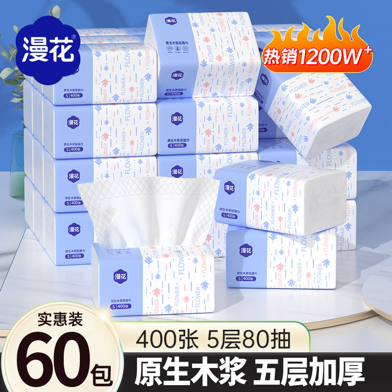 漫花纸抽大箱60包家用实惠囤货装原木5层清洁卫生纸厕用抽纸批发 1件