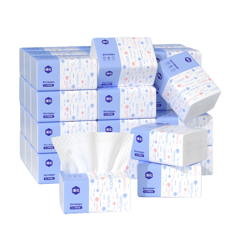 漫花抽纸30包整箱小蓝抽400系列家用面巾纸加厚纸巾厂家直销批发 1件
