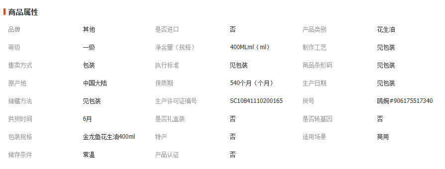 金龙鱼花生油400ml食用植物油商超团购礼品调和油食品清香食用油 20瓶