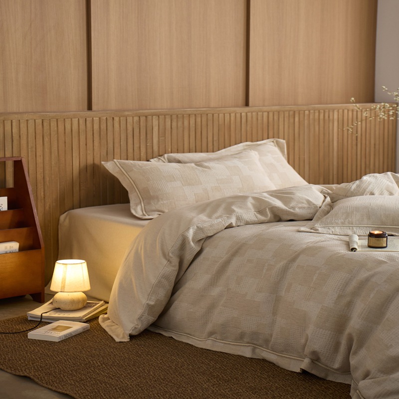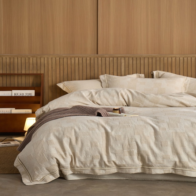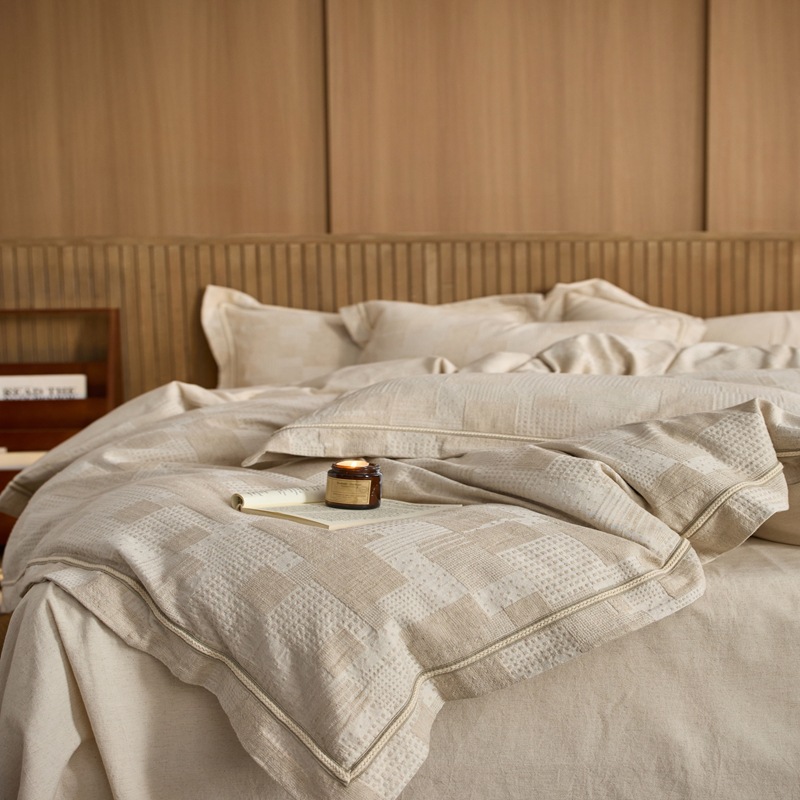 简约素色棉麻色织大提花四件套20%亚麻80%棉亲肤跨境床上用品批发 1套