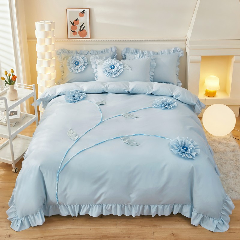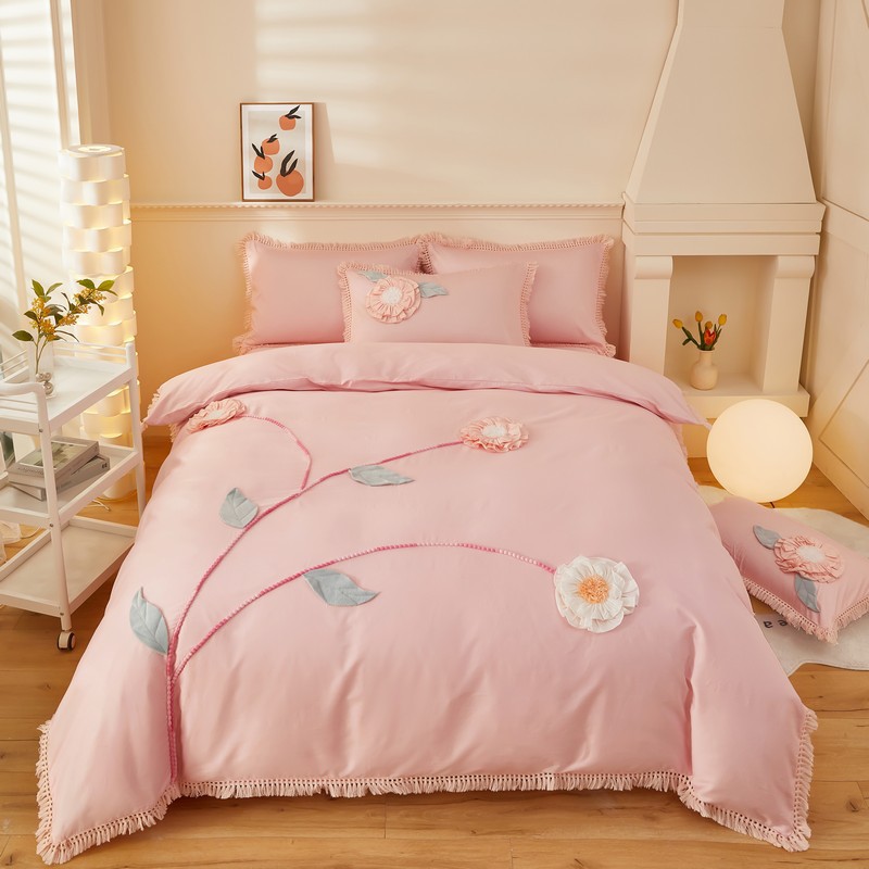 跨境亚马逊盘花花卉流苏花边被套家纺床上用品三件套外贸批发工厂 30套