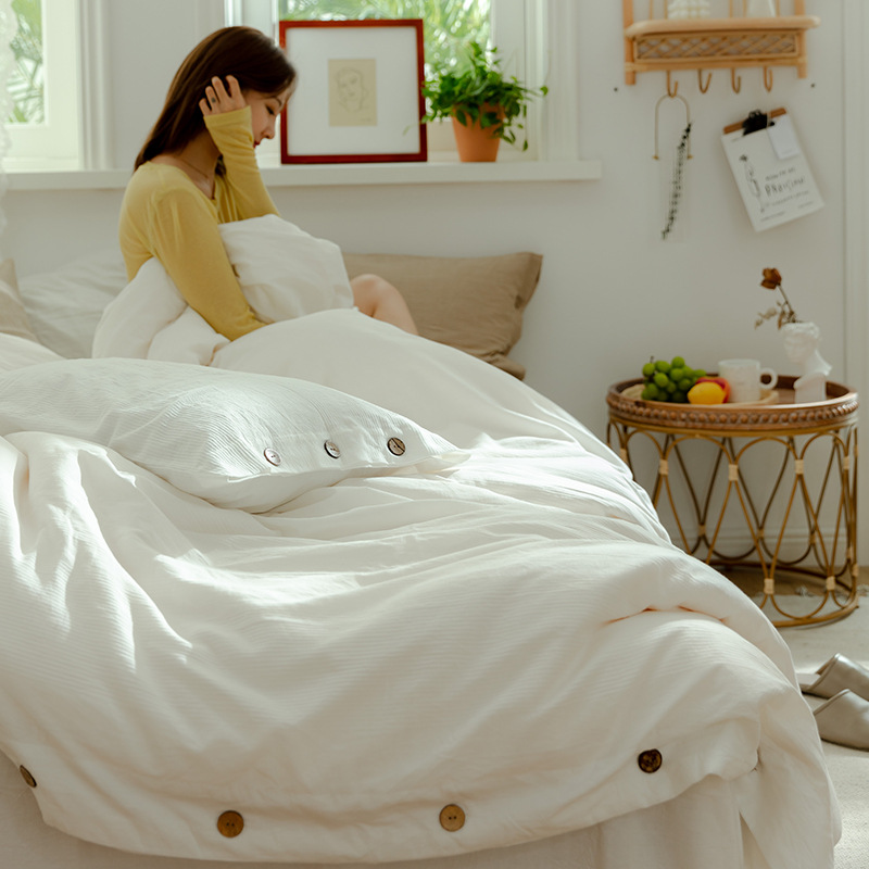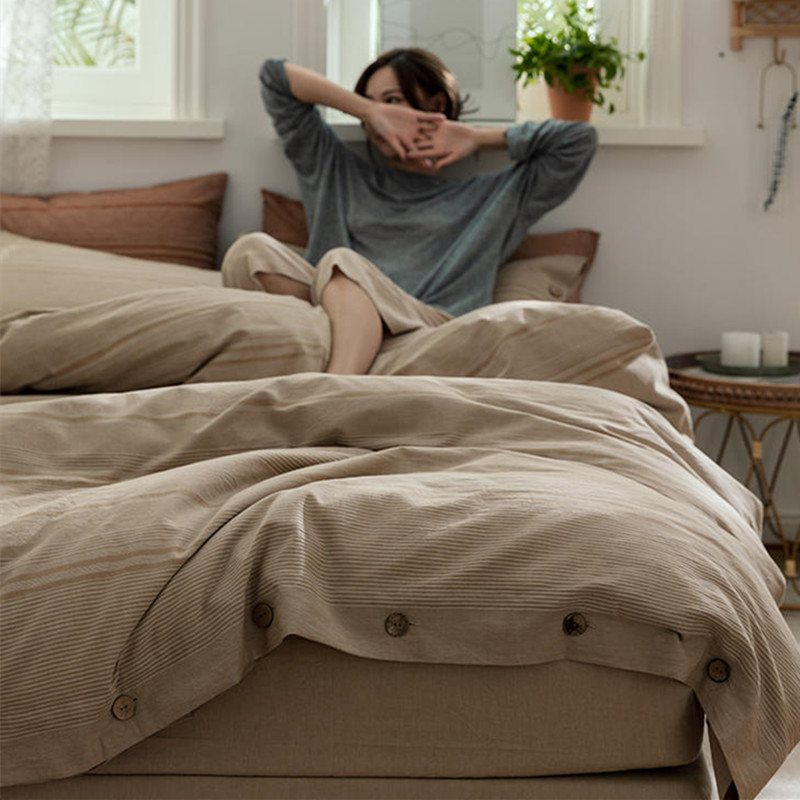 天锚同款日式简约四件套水洗纯棉全棉被套床单款床笠床上用品春秋 1套