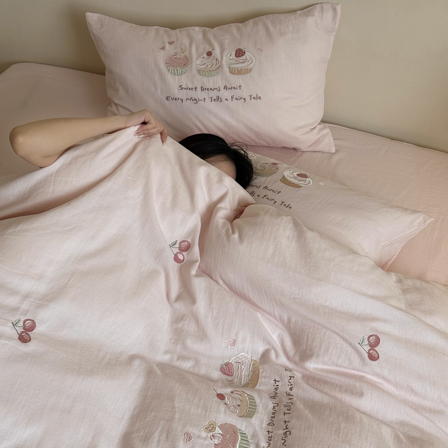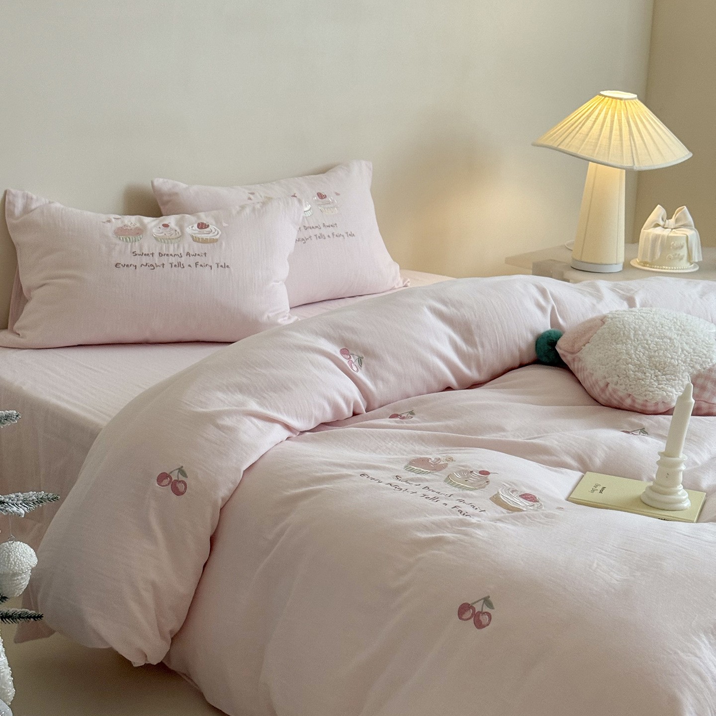 2025新款秋冬款全棉皱皱纱精密刺绣系列四件套-香草甜铺 1.5m床单 1个