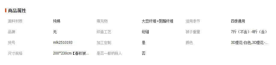 ins简约全棉3D提花大豆被子被芯秋冬加厚保暖200*230cm双人被芯 1床