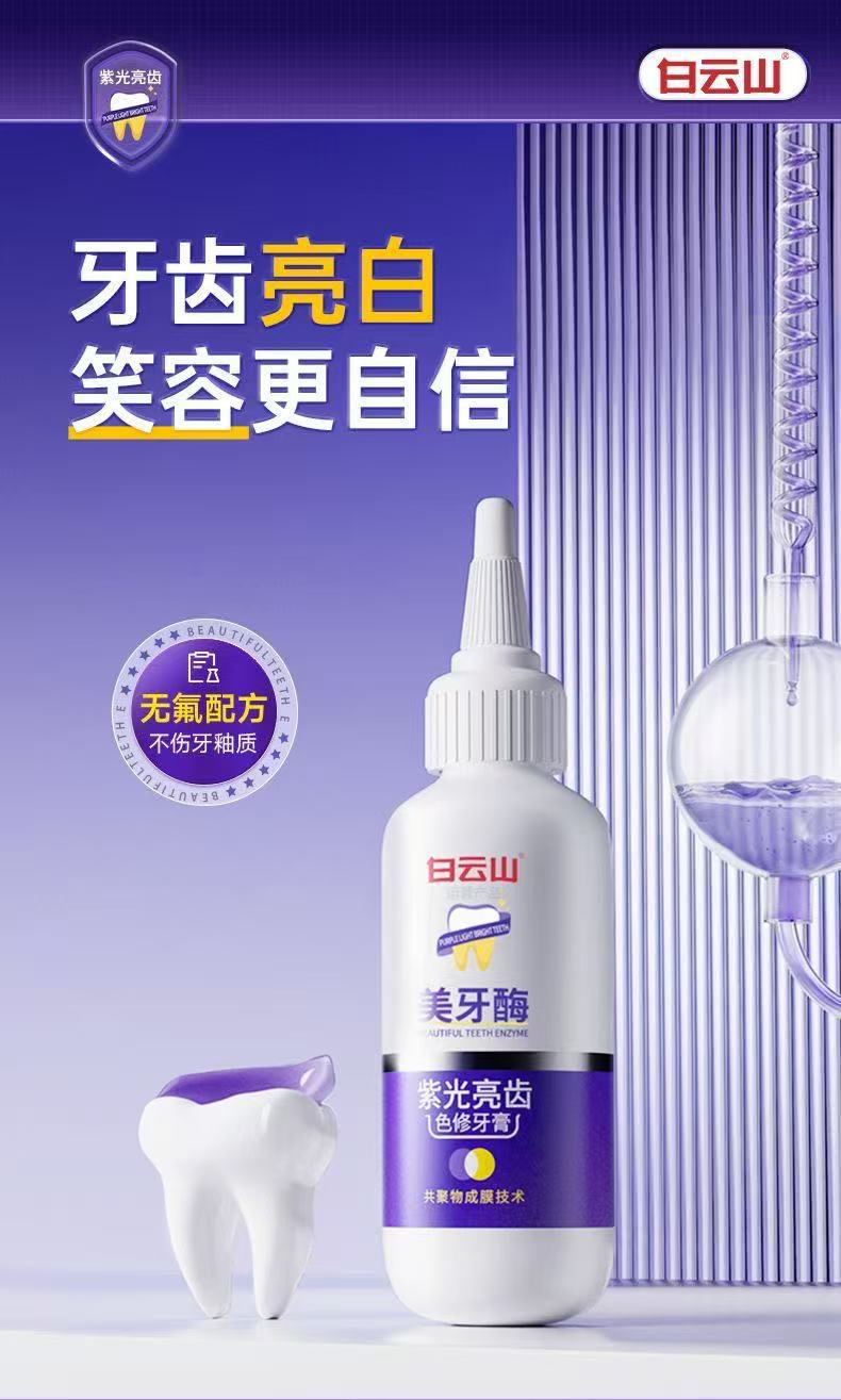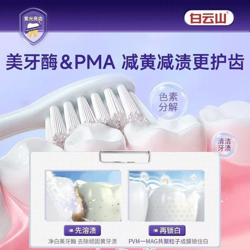 白云山美牙酶紫光亮齿色修牙膏去黄口臭牙齿清新牙垢批发代发
