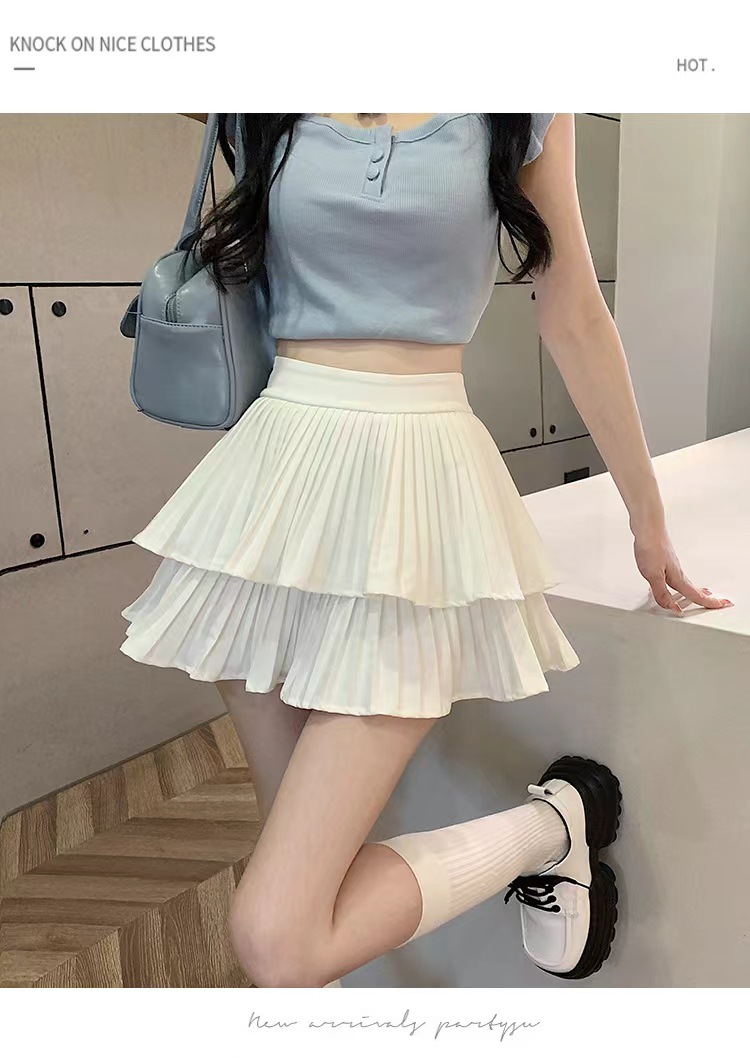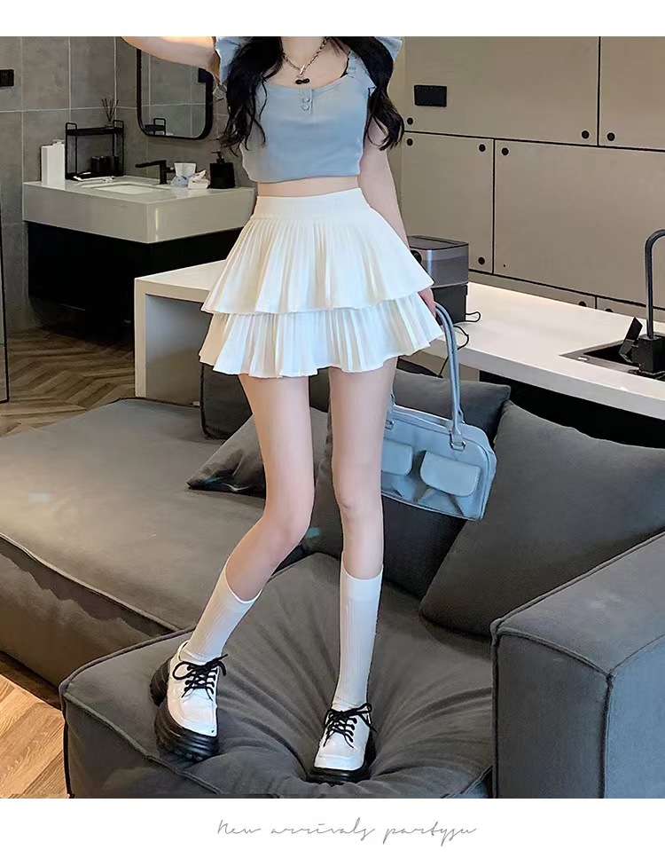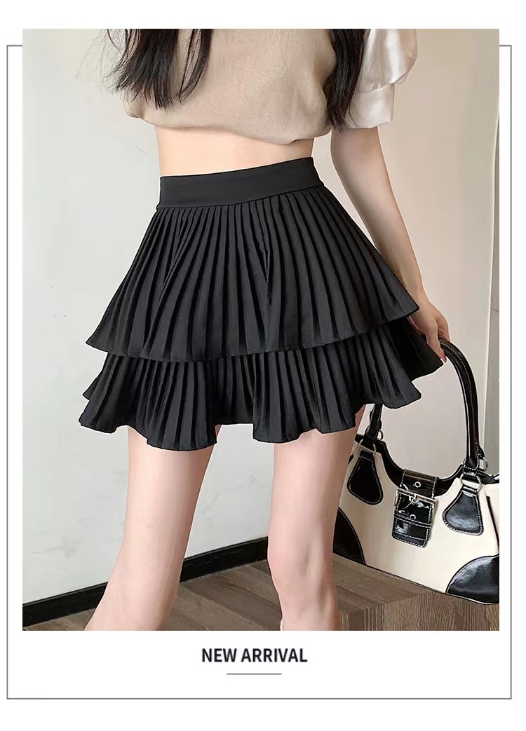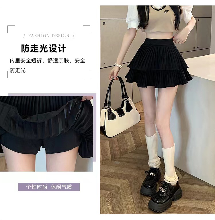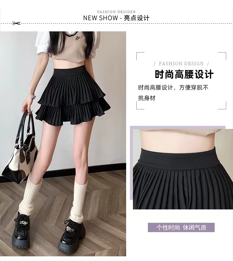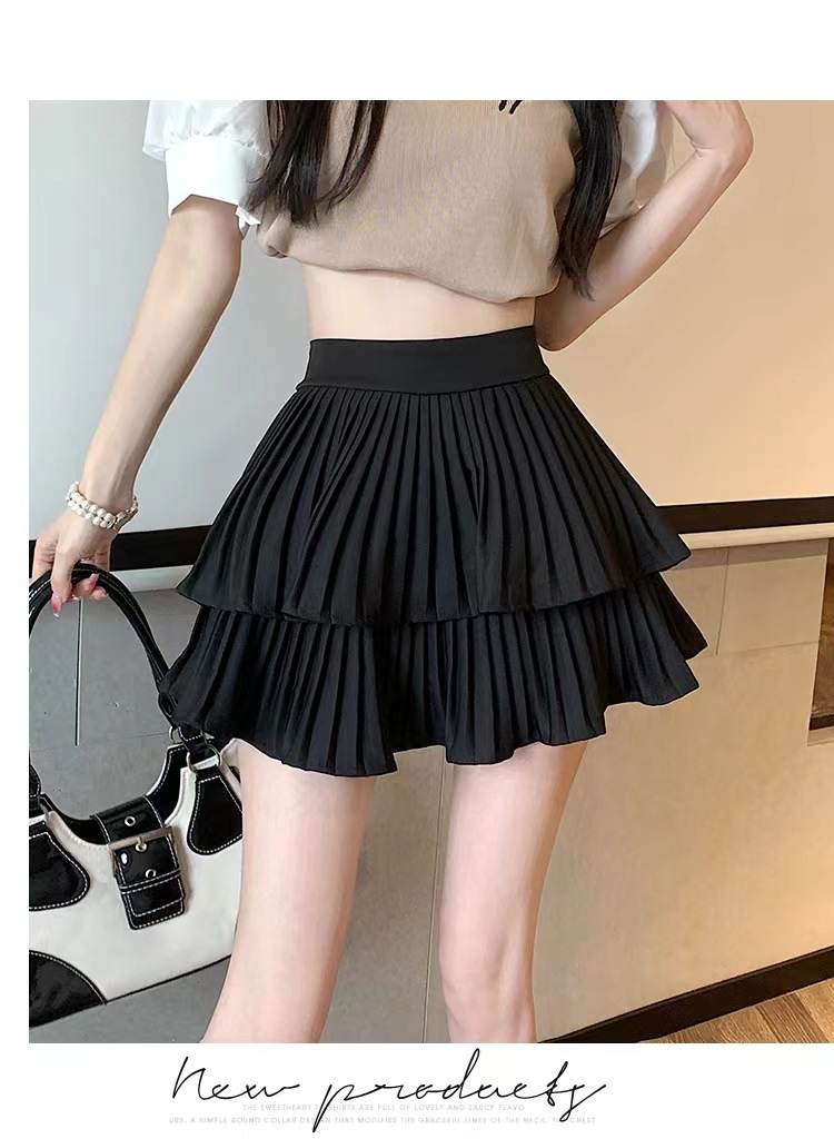 双层蛋糕百褶半身裙女夏季高腰显瘦粉色短裙a字荷叶边蓬蓬伞裙子