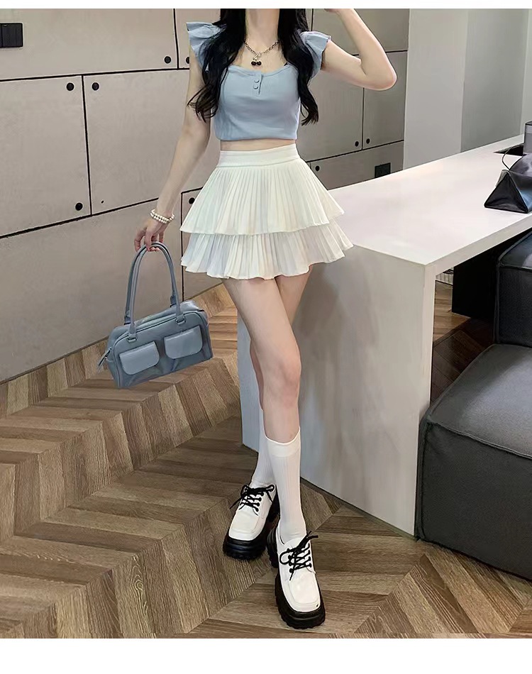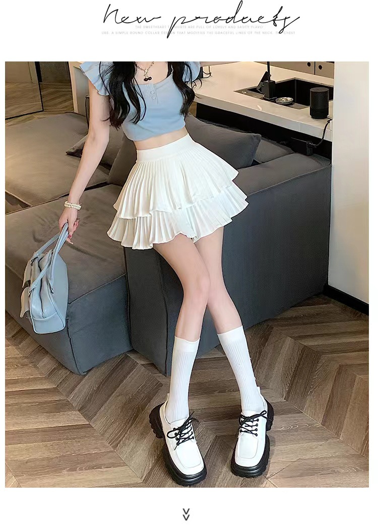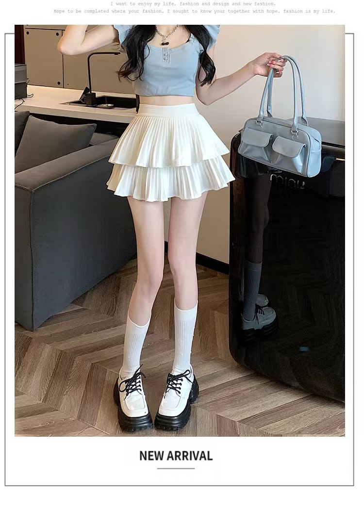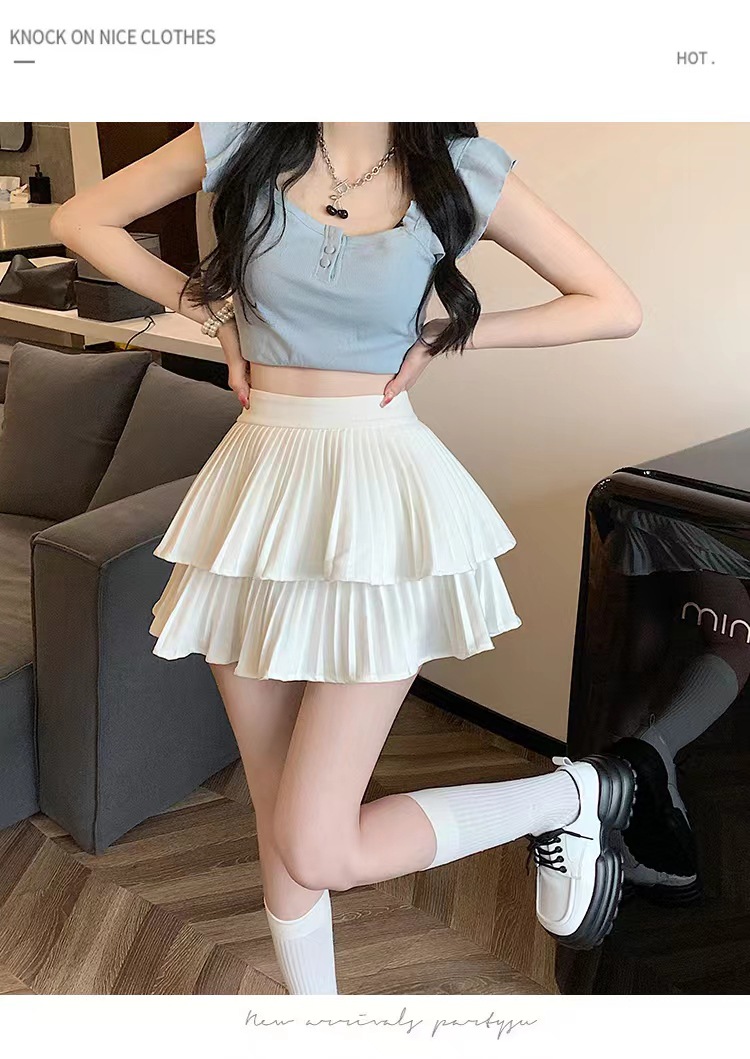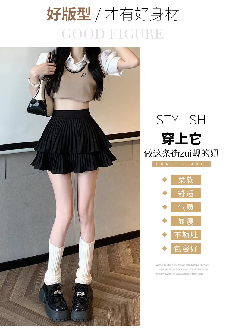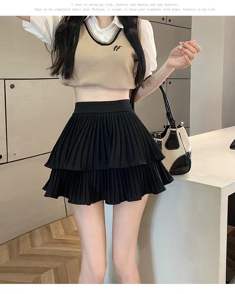 双层蛋糕百褶半身裙女夏季高腰显瘦粉色短裙a字荷叶边蓬蓬伞裙子