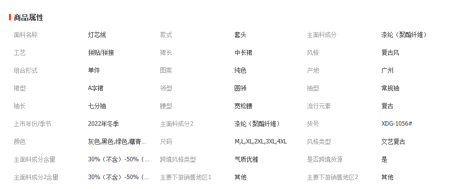 2022秋冬新款灯芯绒复古纯色连衣裙宽松连衣裙胖妹妹大码女装