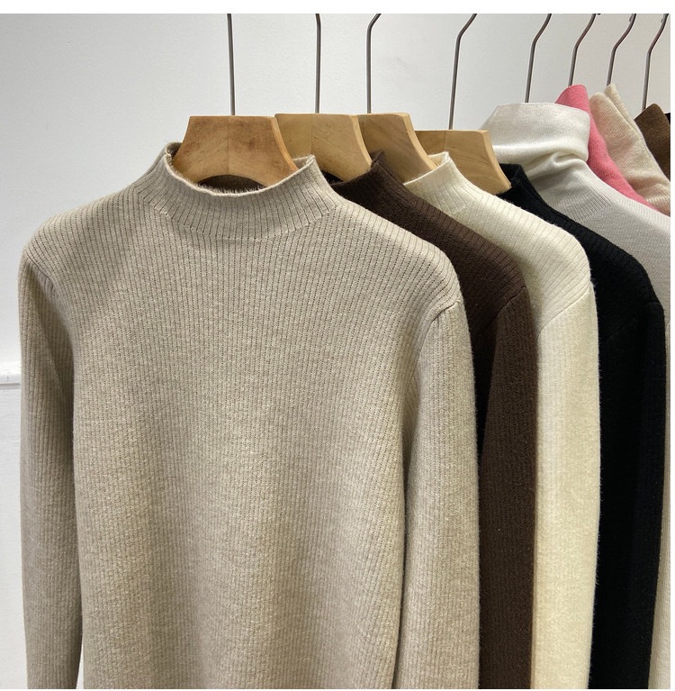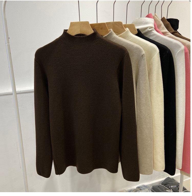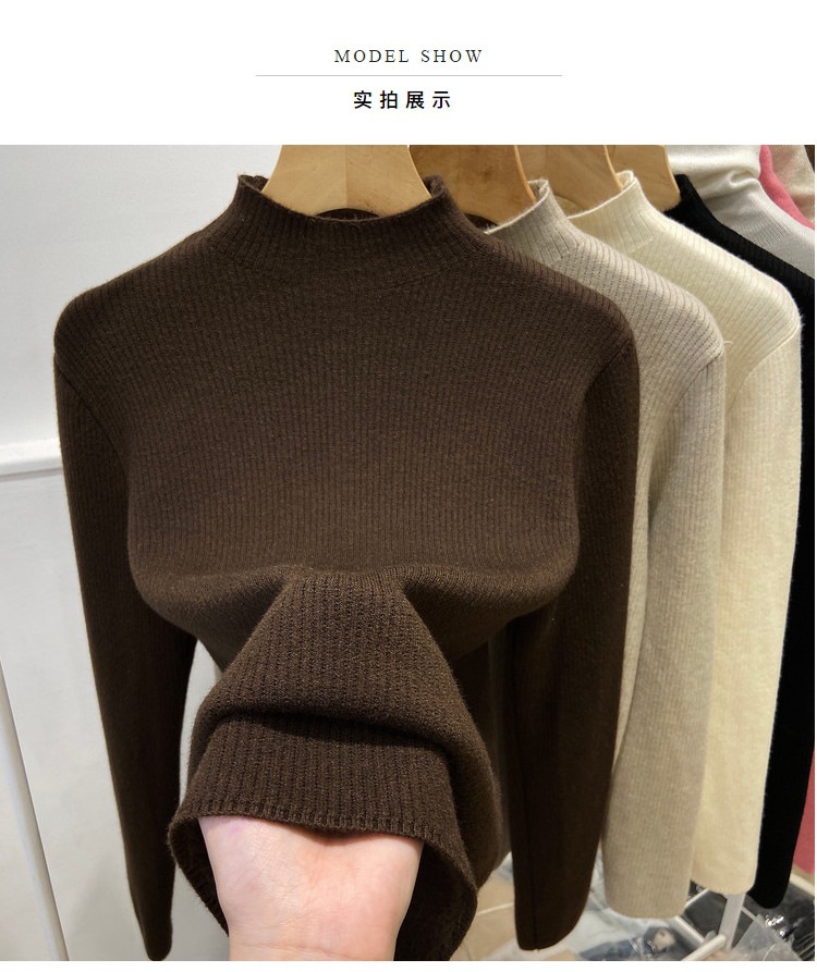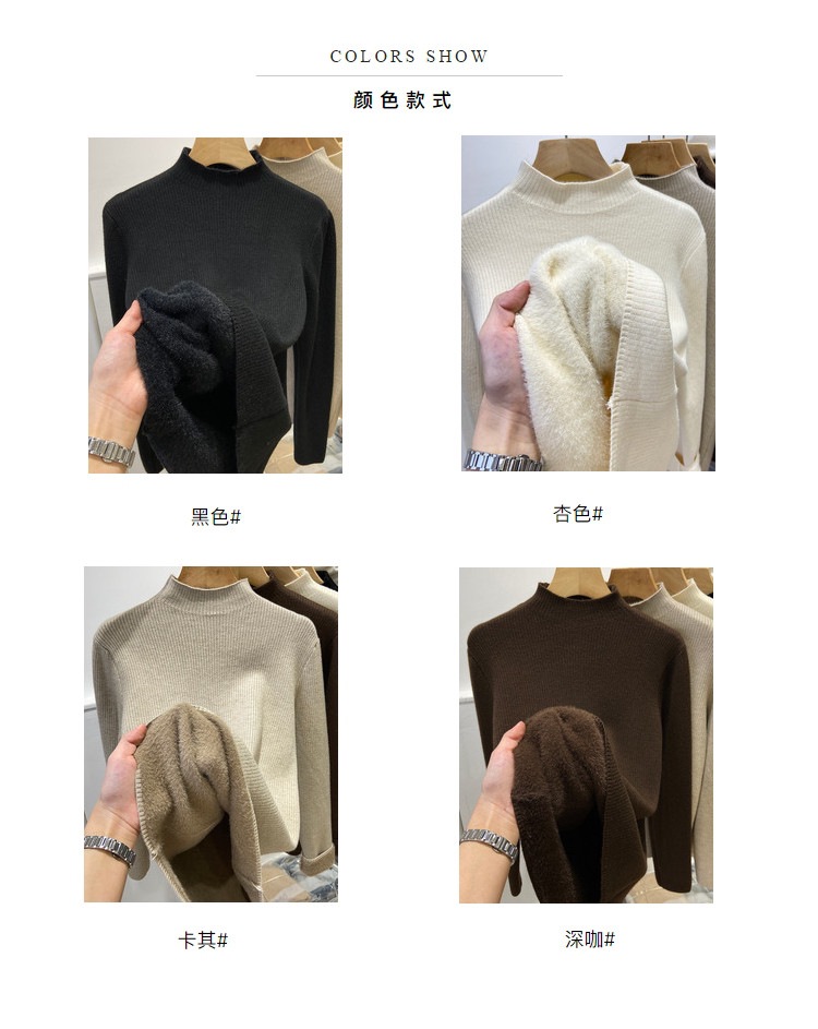 冬季加绒加厚针织打底衫女一体绒半高领套头毛衣保暖内搭上衣纯色