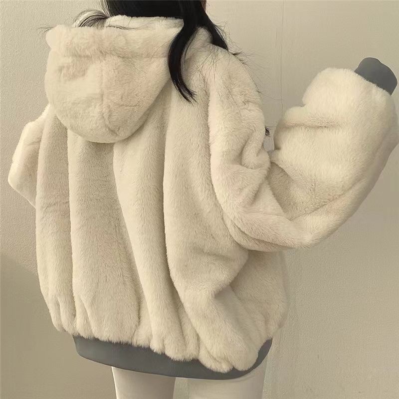 韩国加绒加厚两面穿羊羔毛棉服女装外套冬季新款拉链连帽棉衣上衣