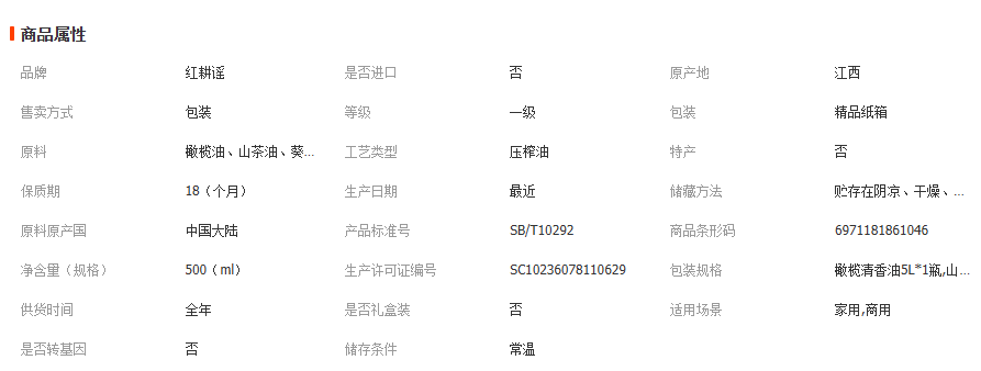 红耕谣橄榄清香5L食用油家用植物调和油色拉油批发一件代发