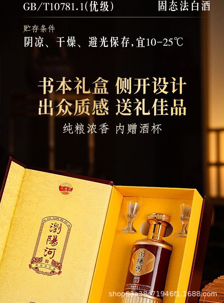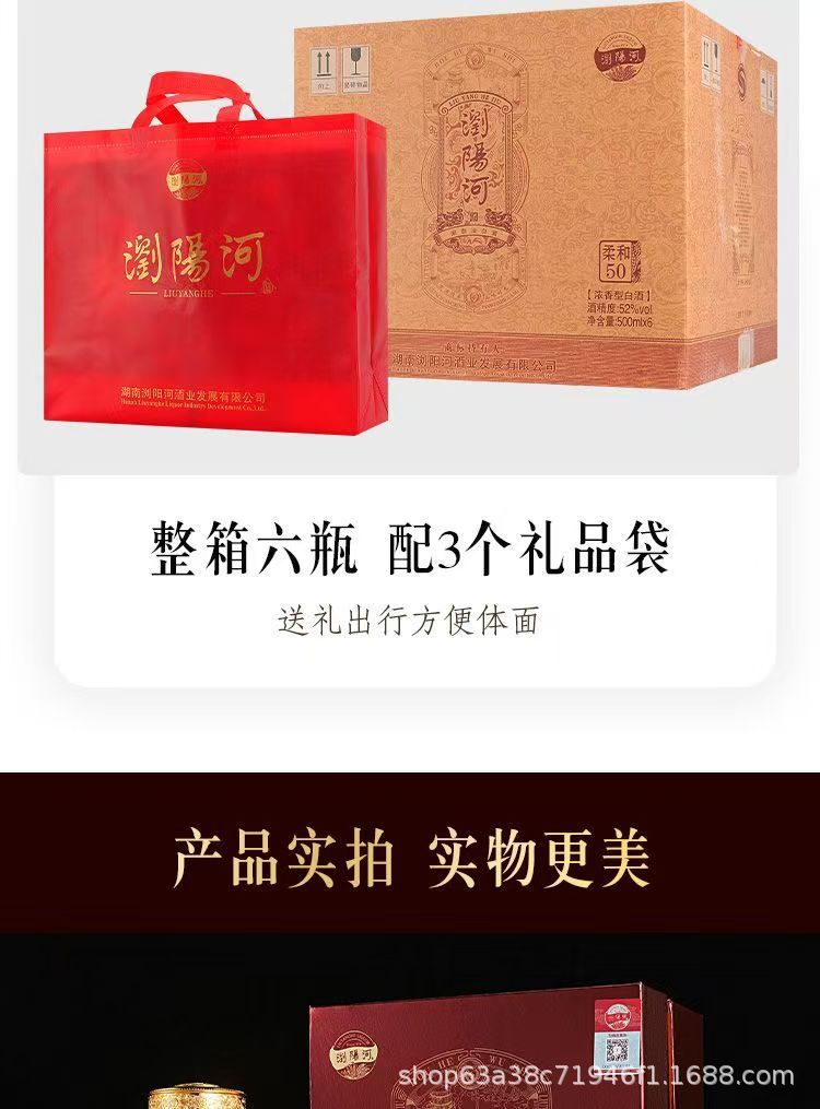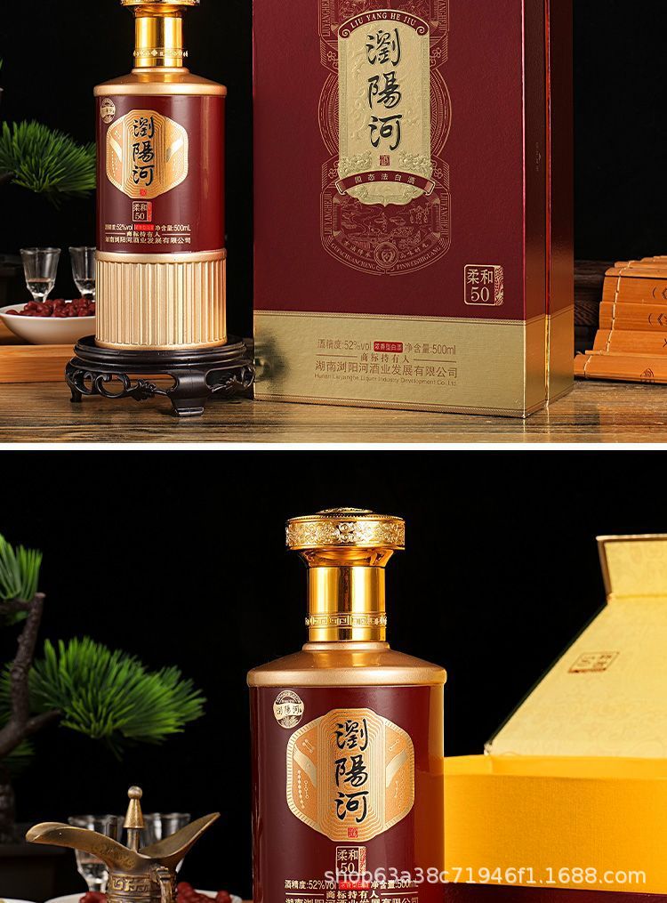 浏阳河酒柔和50 52度浓香型白酒水礼盒装500毫升6瓶 整箱批发代发