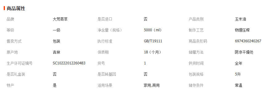 大荒荟萃 玉米油5升一级压榨玉米胚芽油非转基因食用油大桶批发