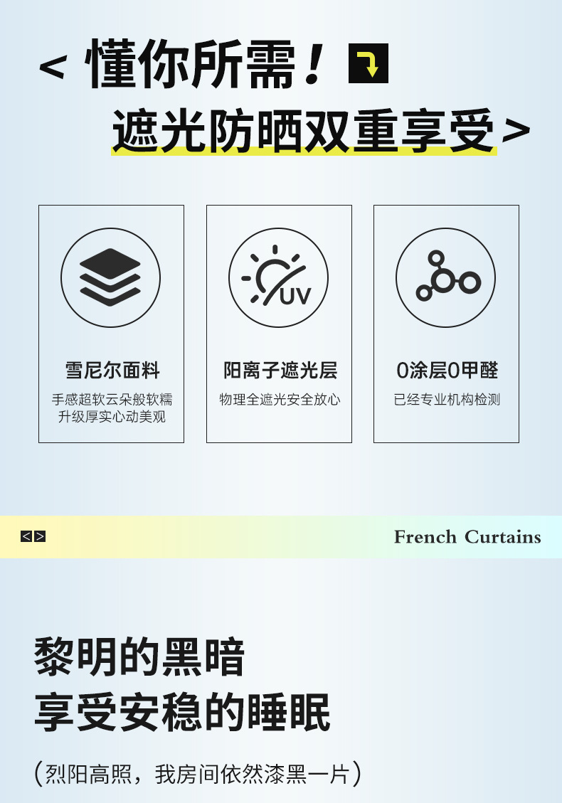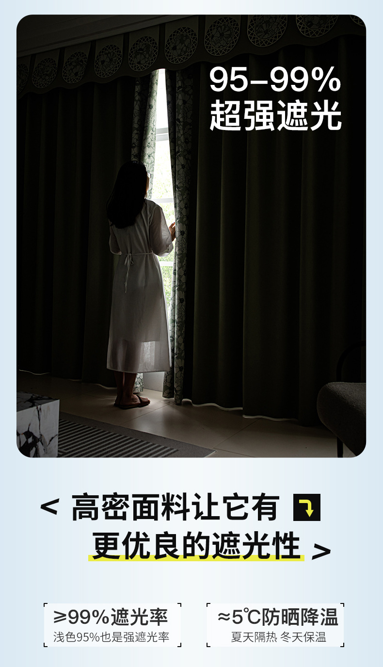 绍兴柯桥窗帘全遮光软糯加厚雪尼尔不透红物理强遮光大师窗帘成品