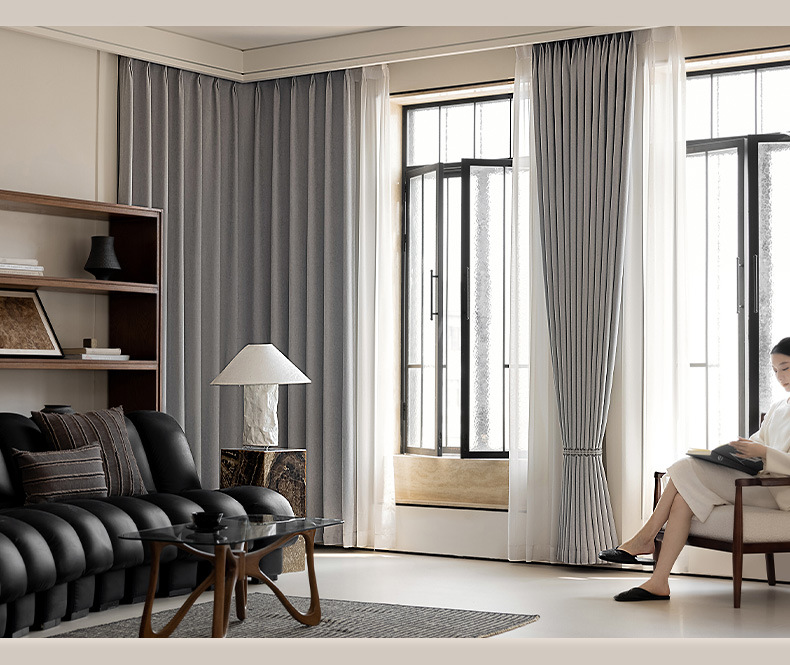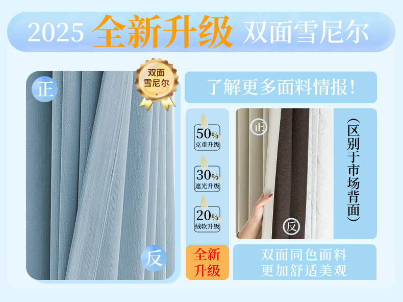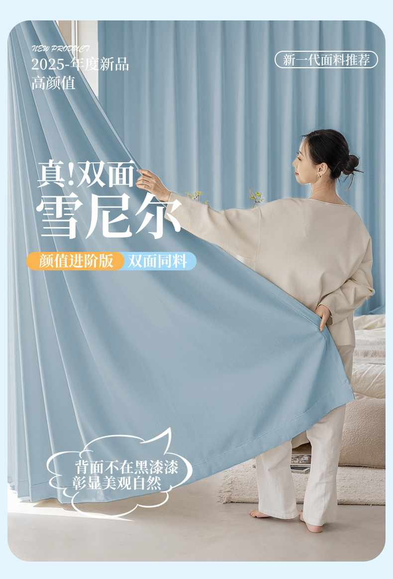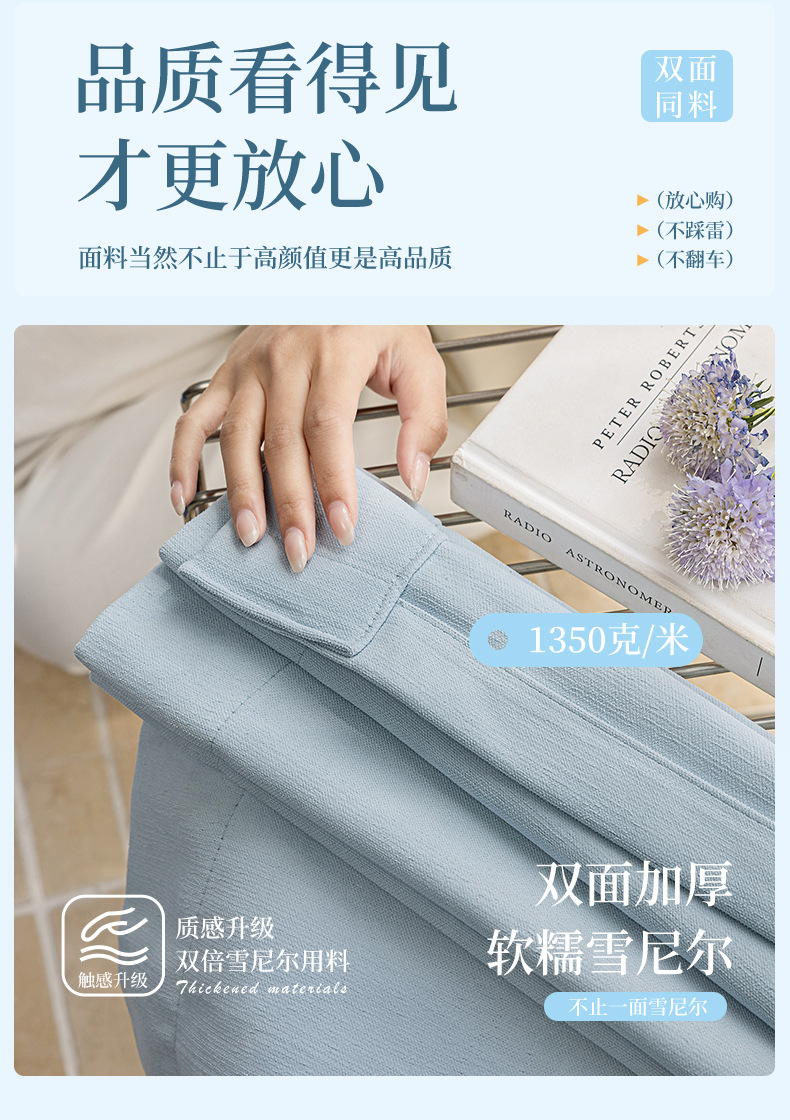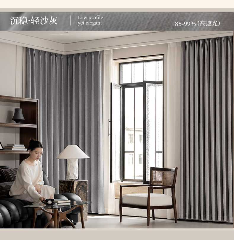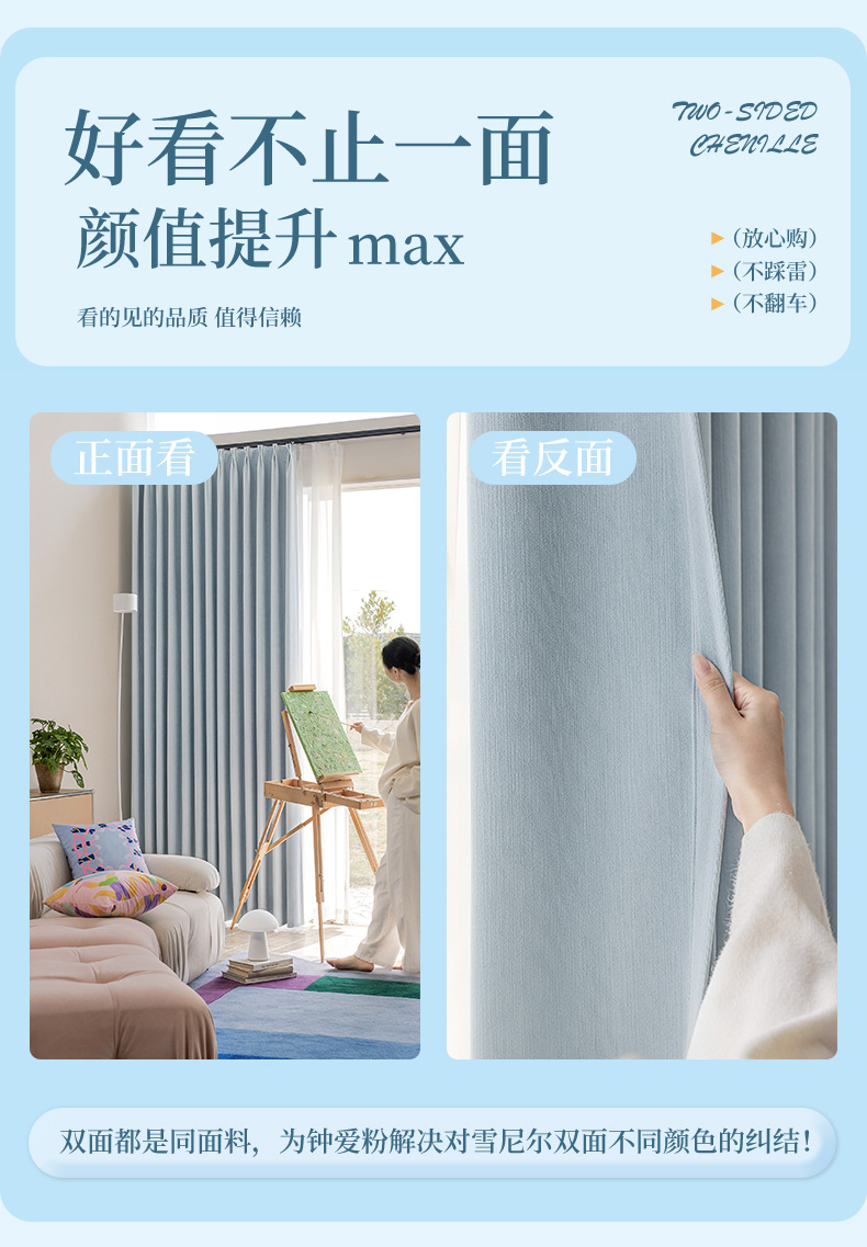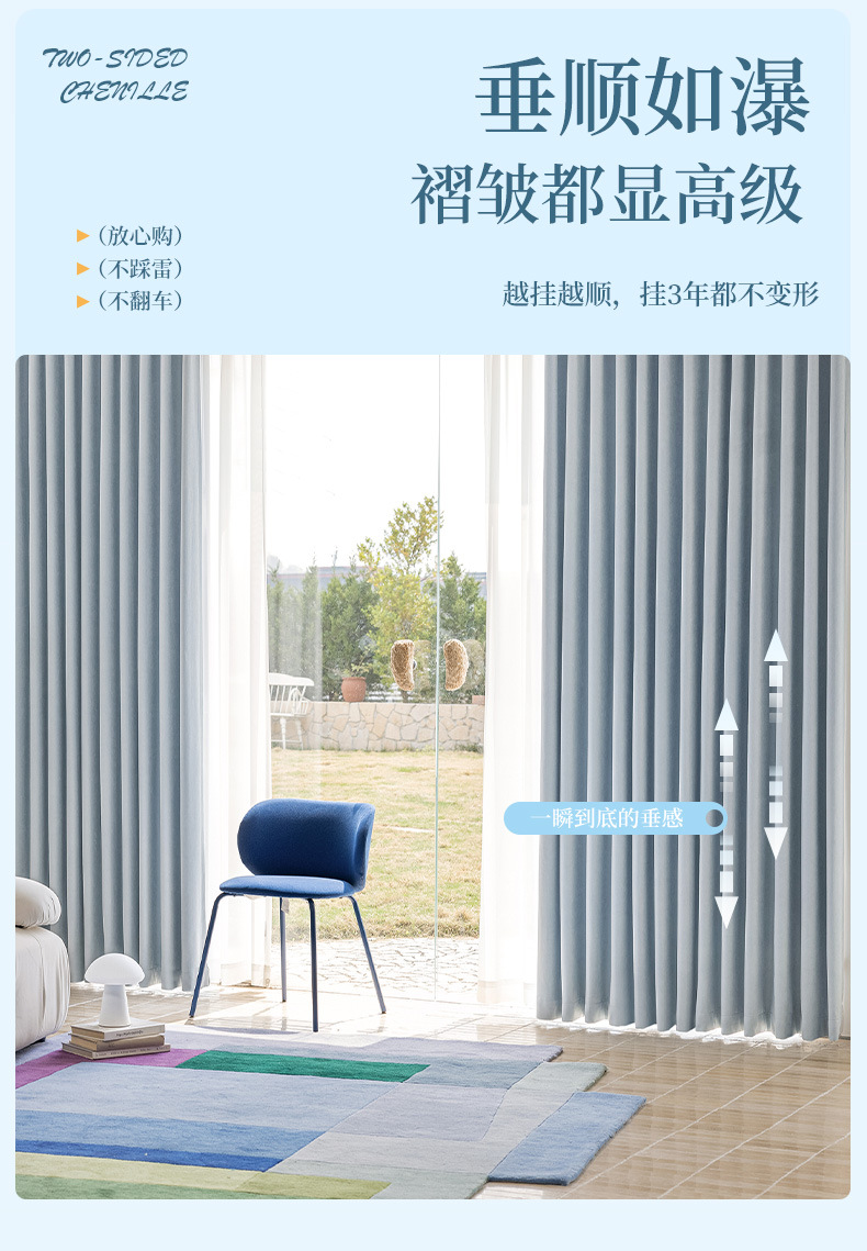绍兴柯桥窗帘定制简约双面雪尼尔遮光窗帘卧室客厅飘窗窗帘布料