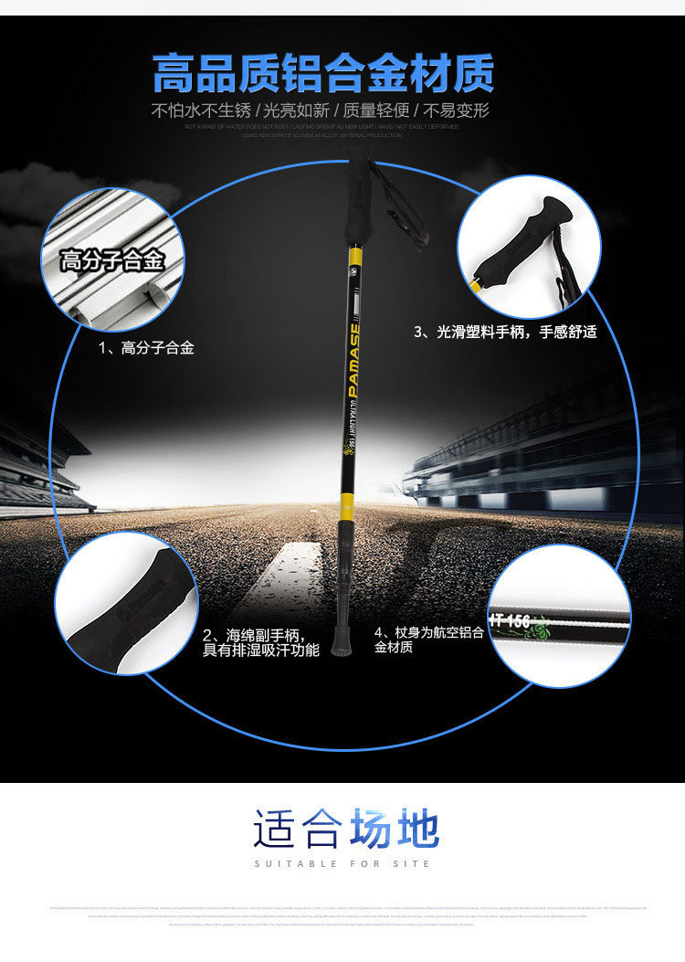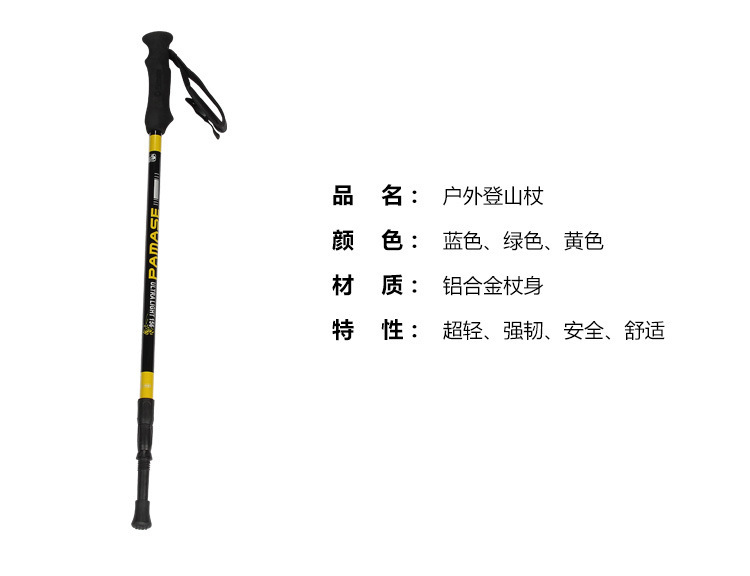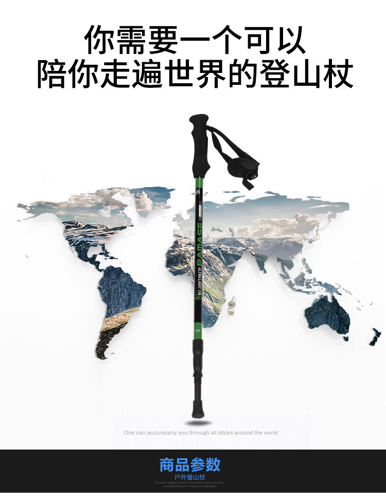 厂家直供新款户外旅游手杖便携直柄徒步爬山拐棍减震铝合金登山杖