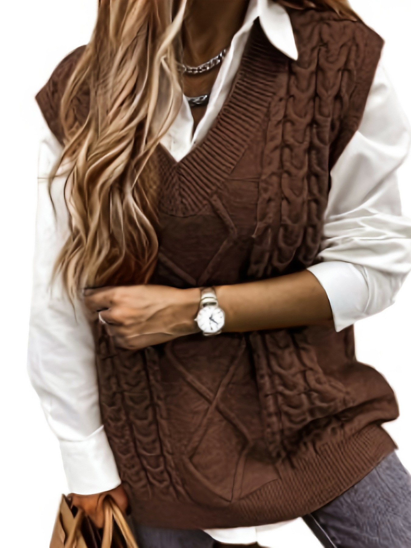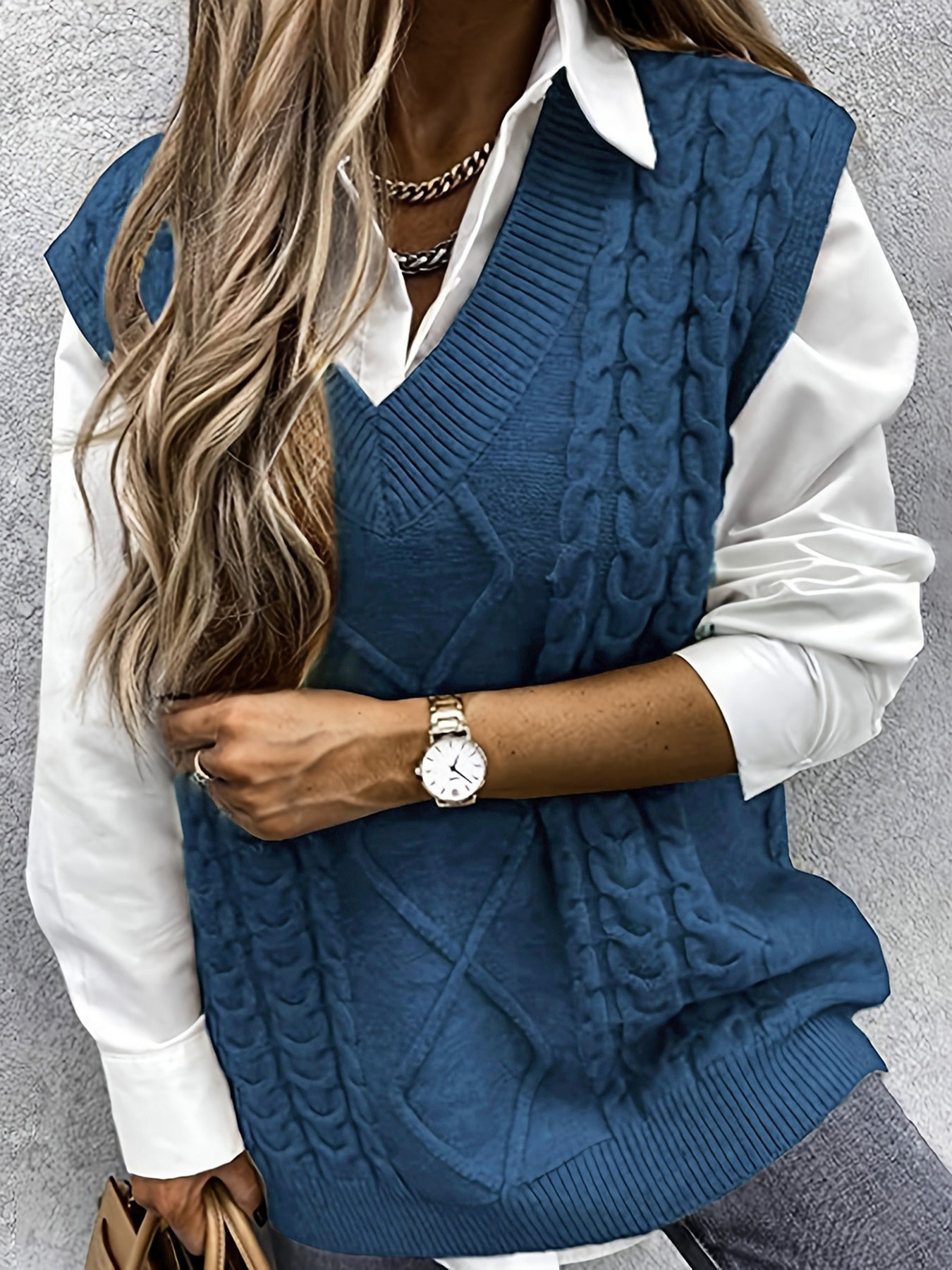 外贸跨境欧美亚马逊源头厂家毛衣背心女式马甲夹v领无袖麻花毛衫
