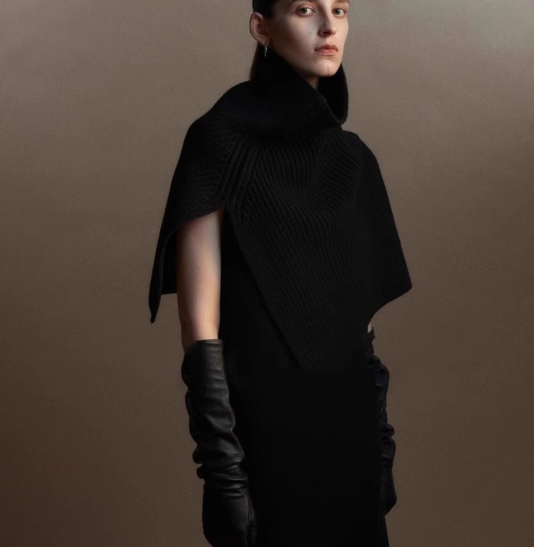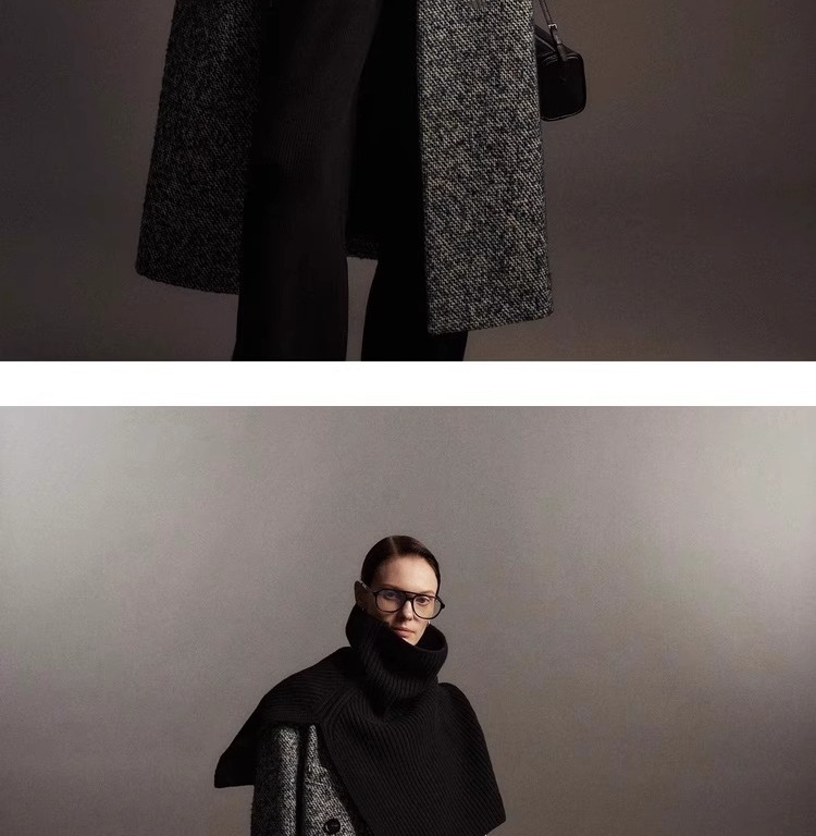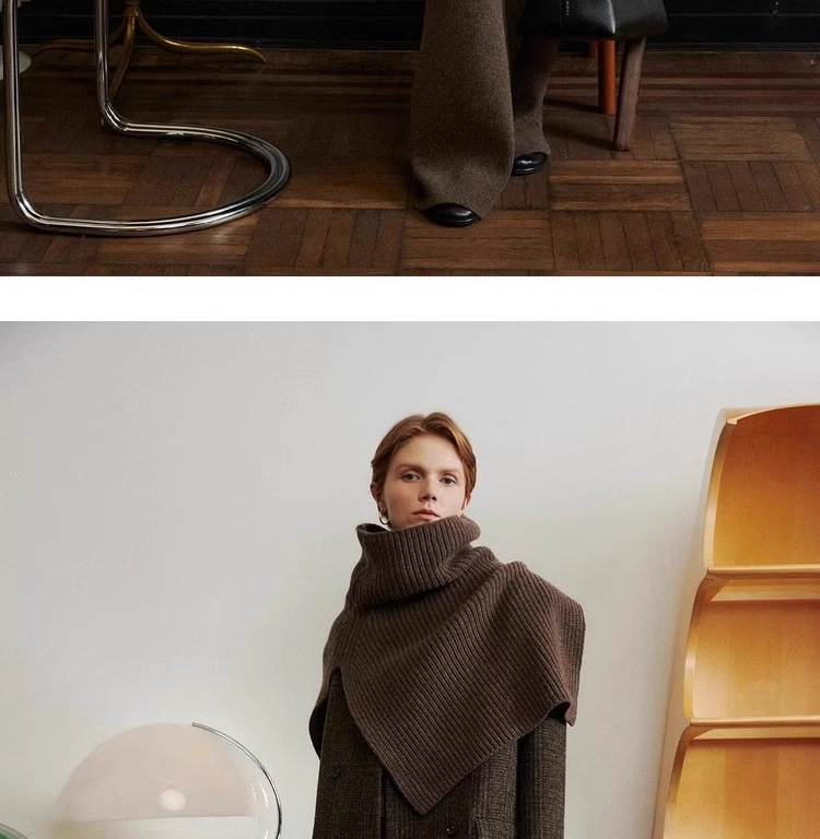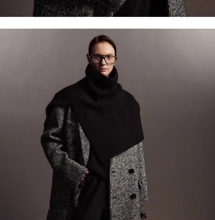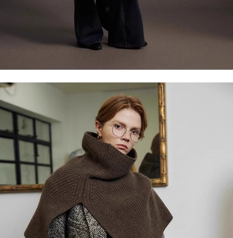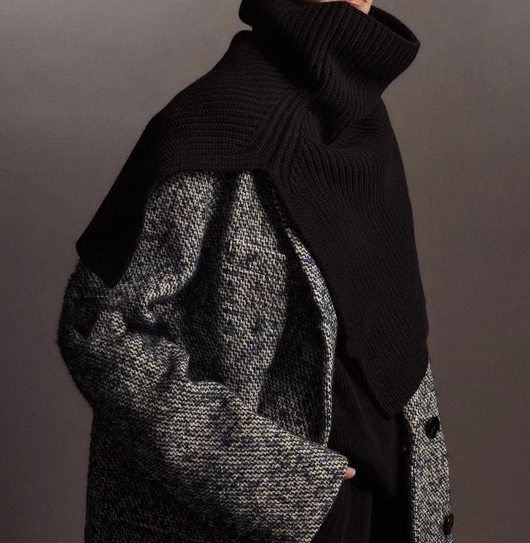 复古灰色针织披肩围巾女冬季高领套头叠穿脖套高级感外搭保暖围脖