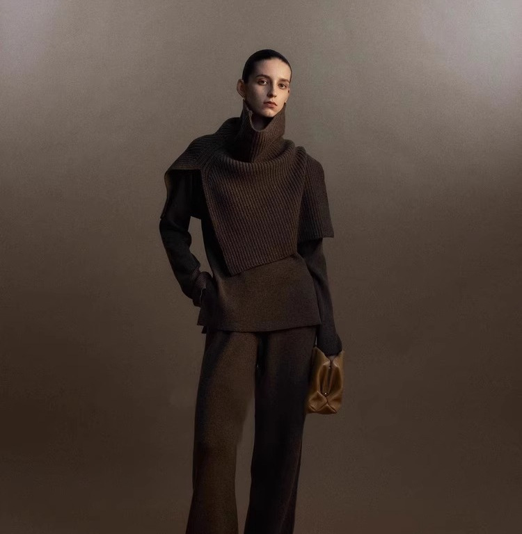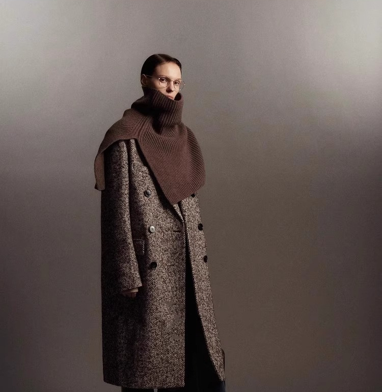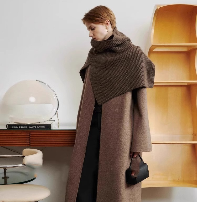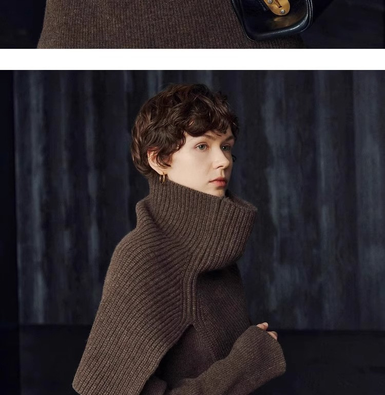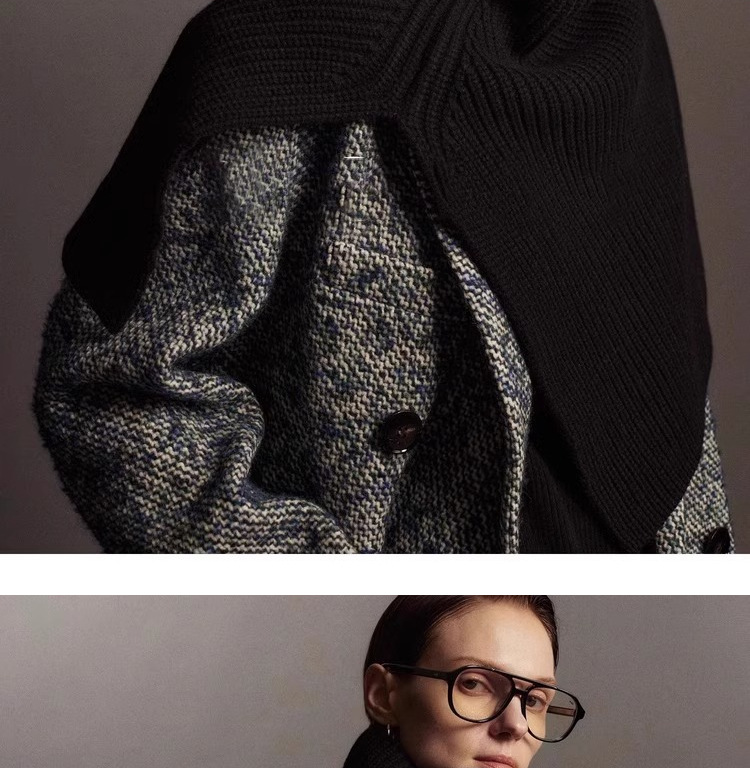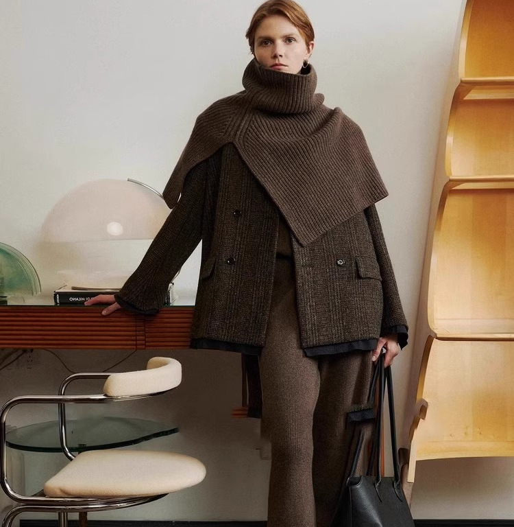 复古灰色针织披肩围巾女冬季高领套头叠穿脖套高级感外搭保暖围脖