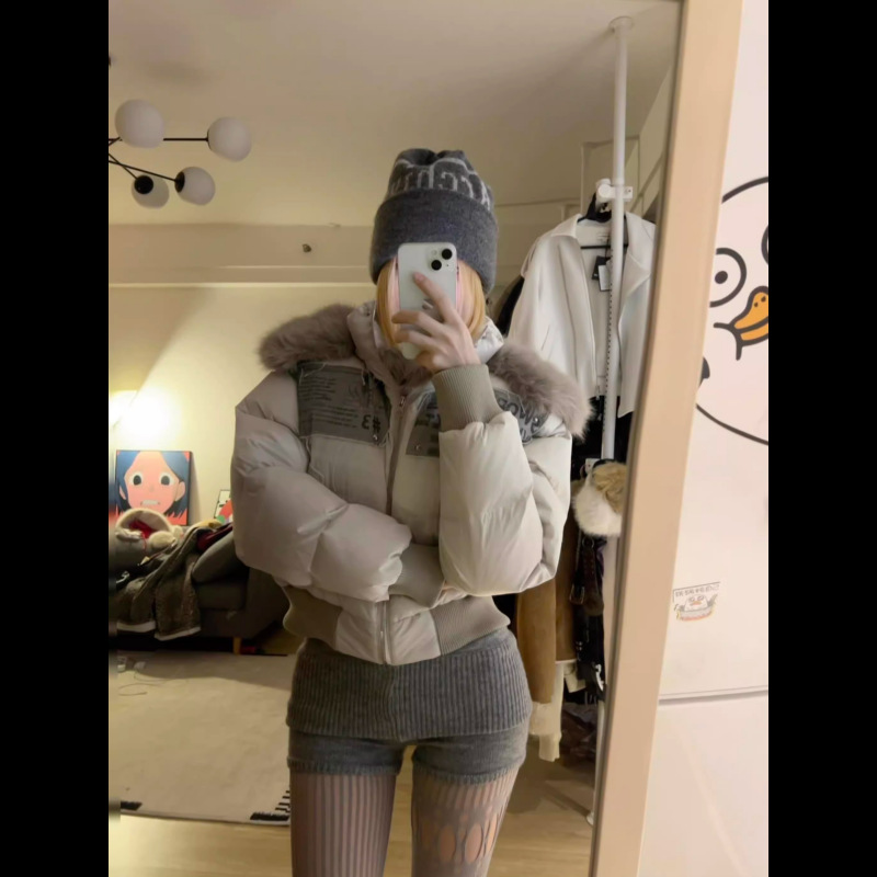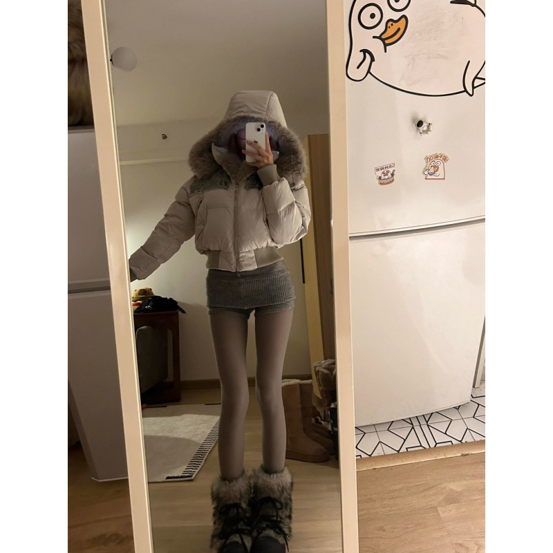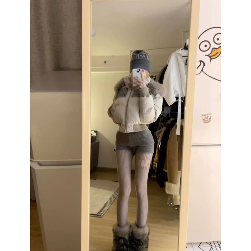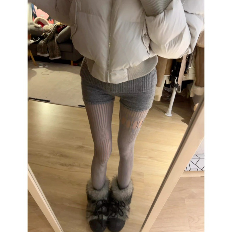 美式复古灰色绒感针织短裤女新款修身百搭设计感翻边宽腰头超短裤
