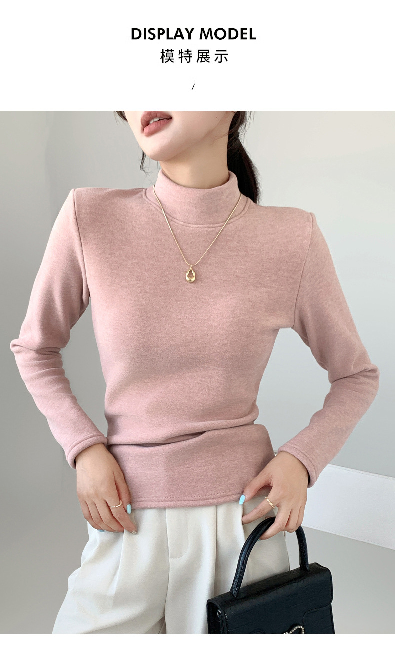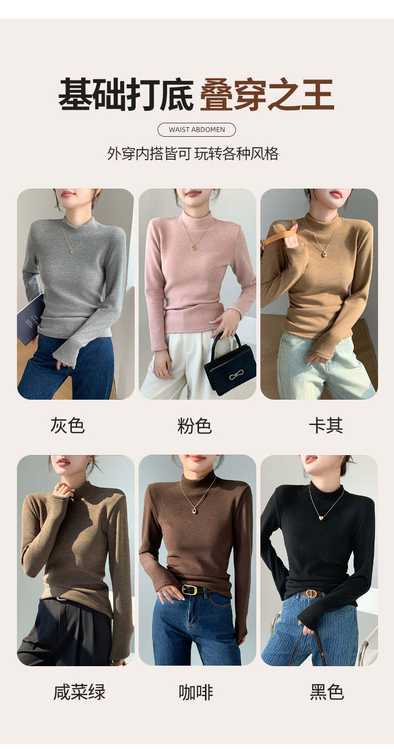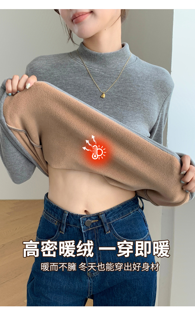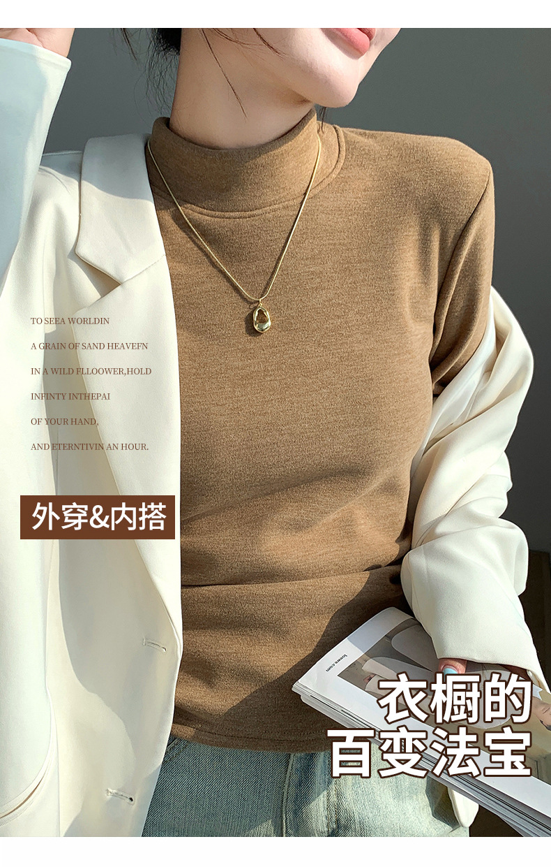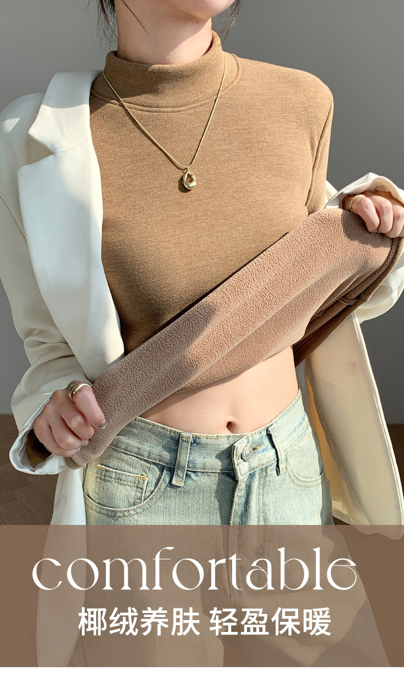 H252椰绒半高领打底衫女秋冬季内搭修身加绒加厚防风保暖长袖上衣