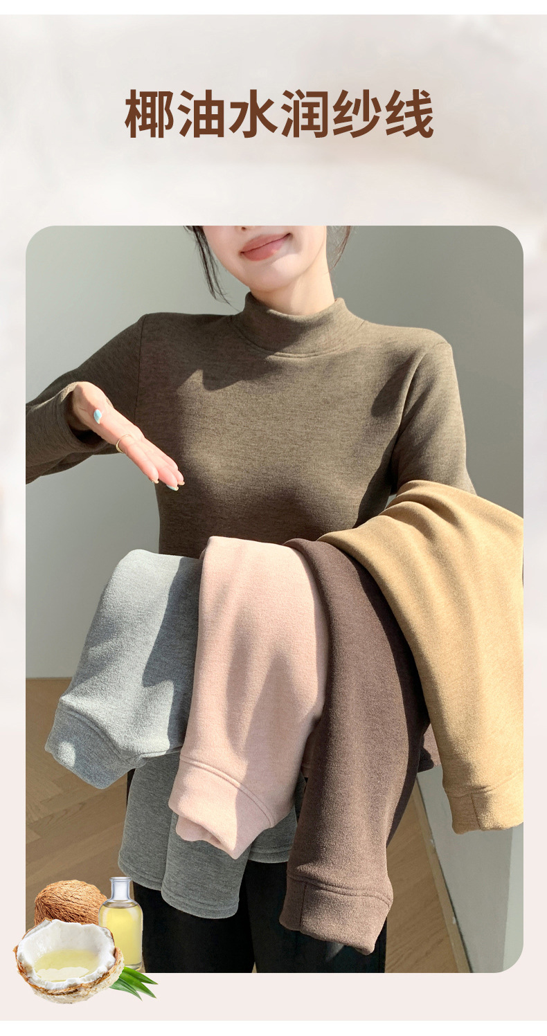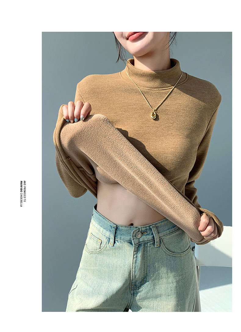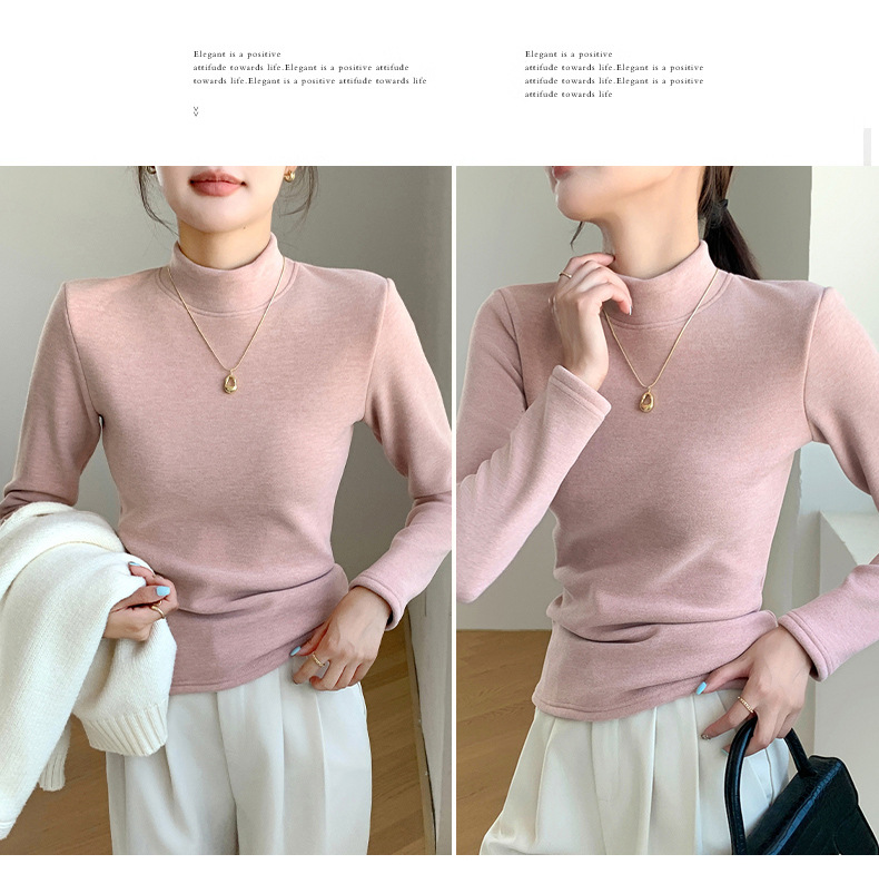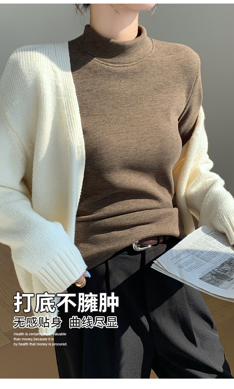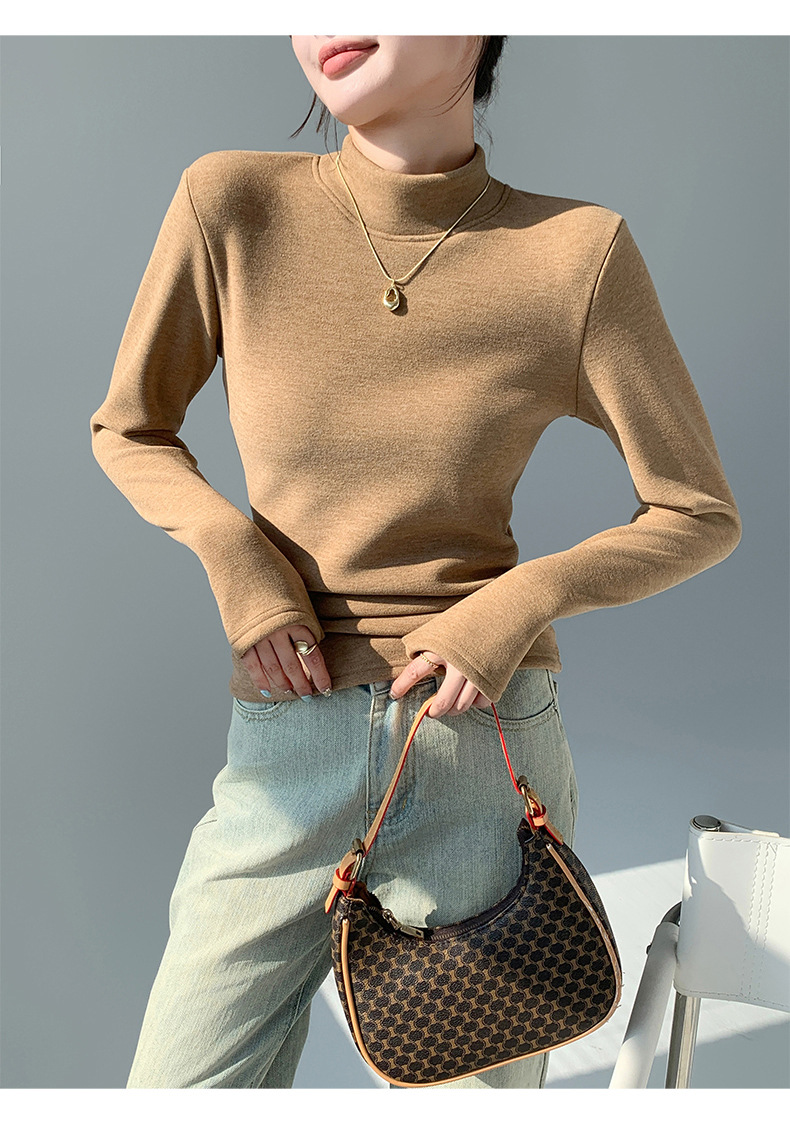 H252椰绒半高领打底衫女秋冬季内搭修身加绒加厚防风保暖长袖上衣