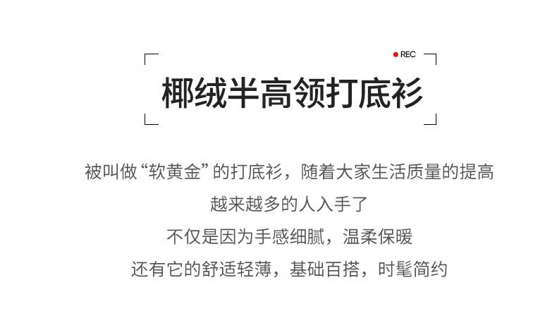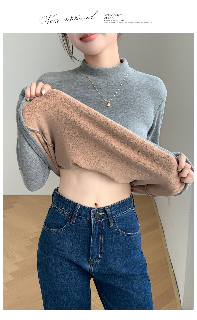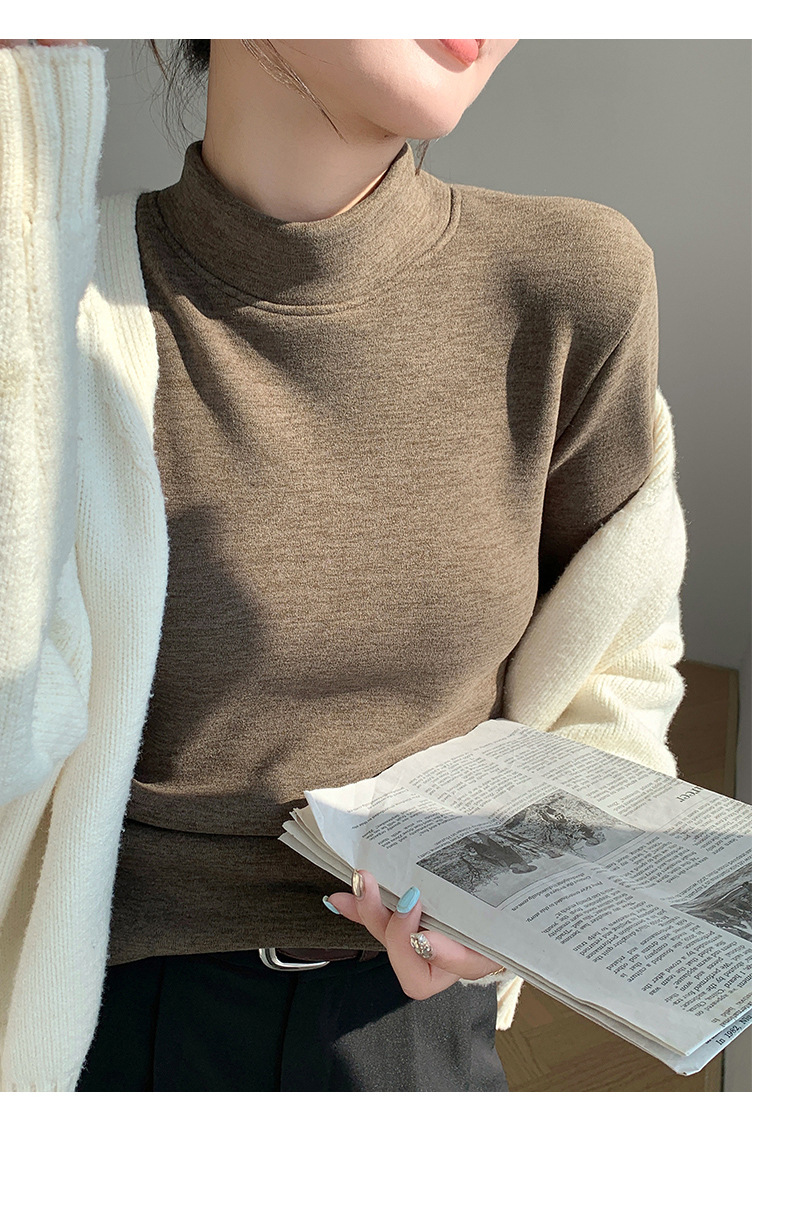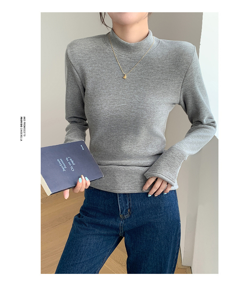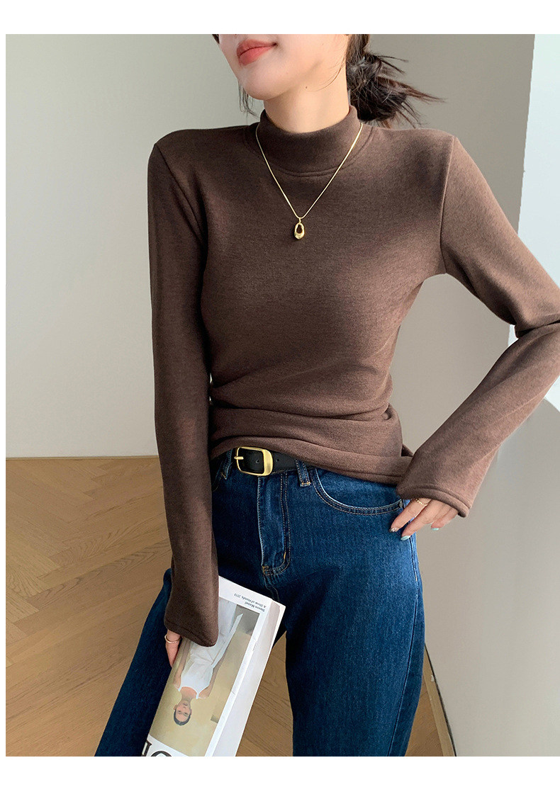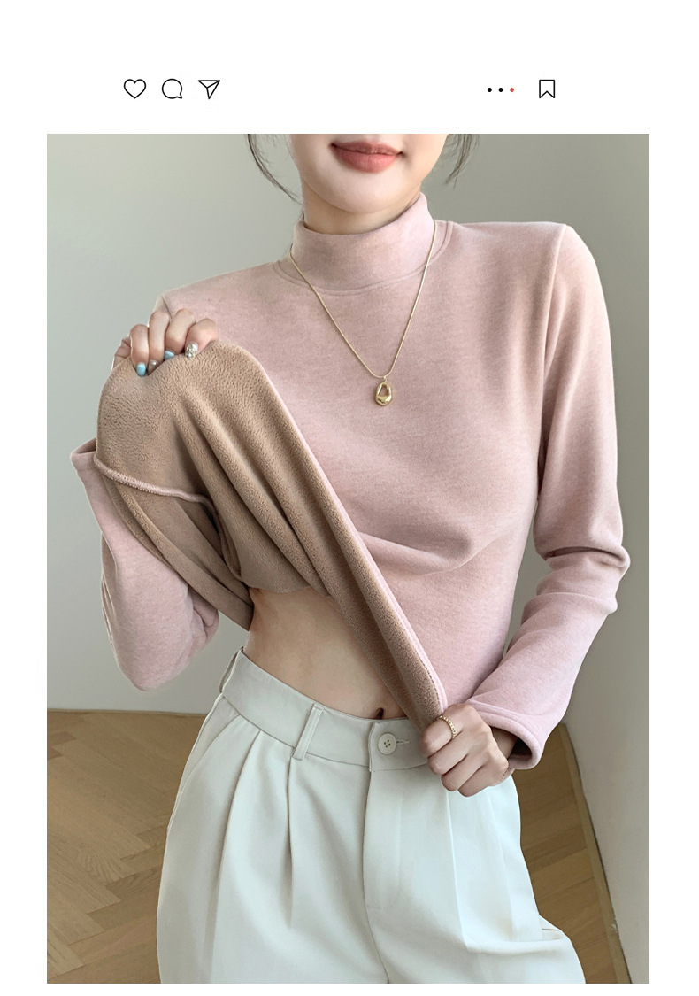 H252椰绒半高领打底衫女秋冬季内搭修身加绒加厚防风保暖长袖上衣