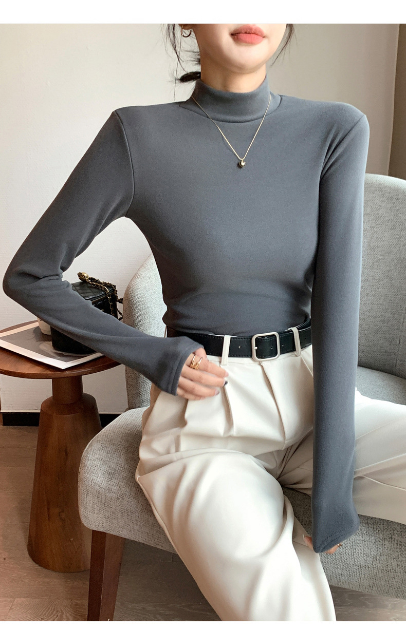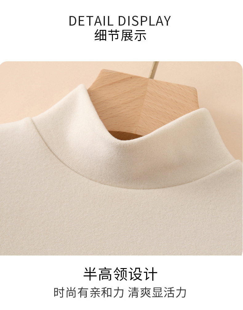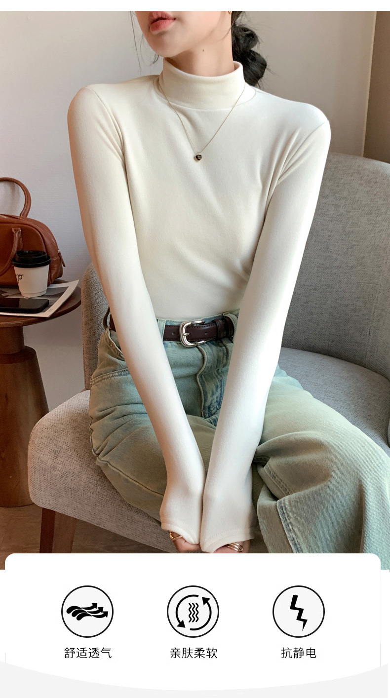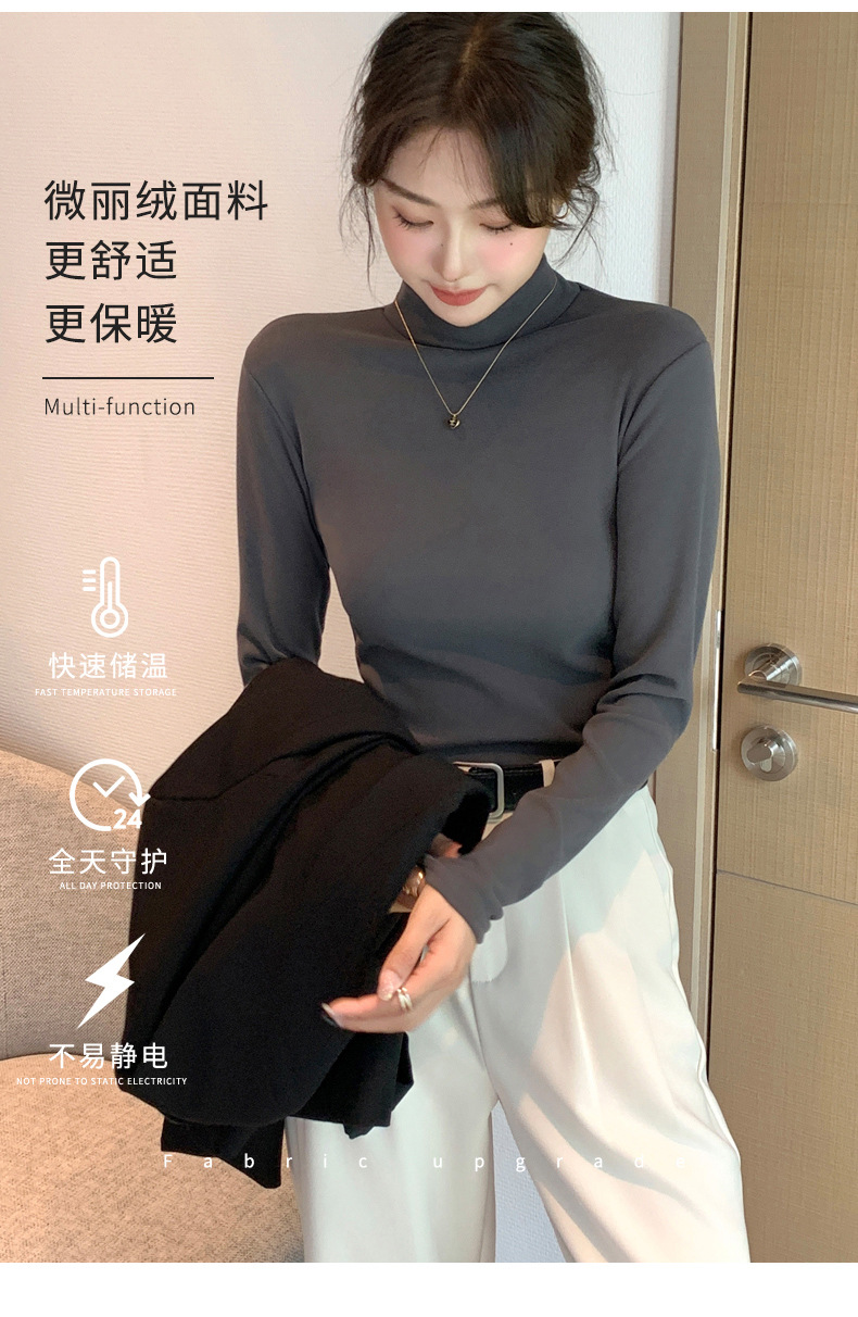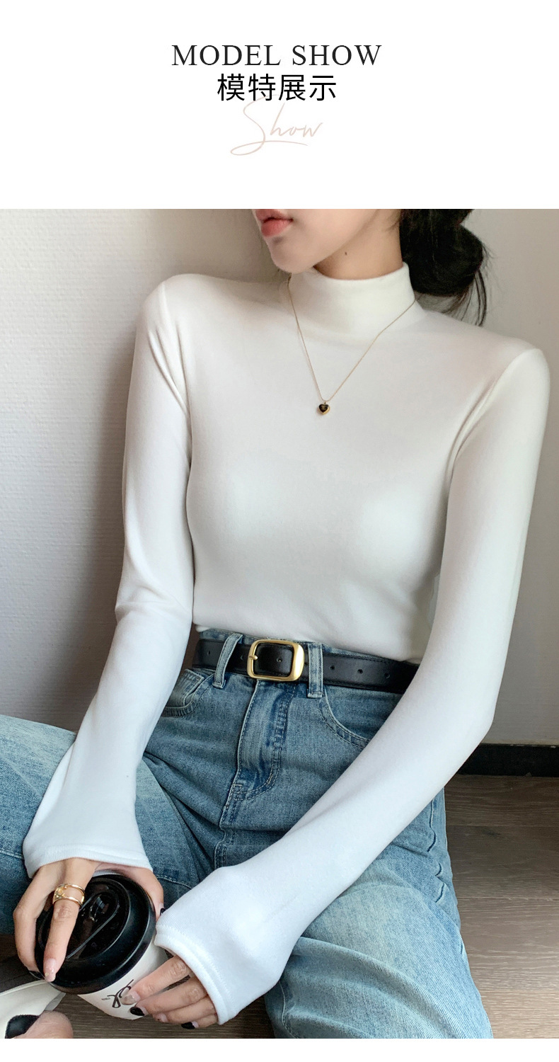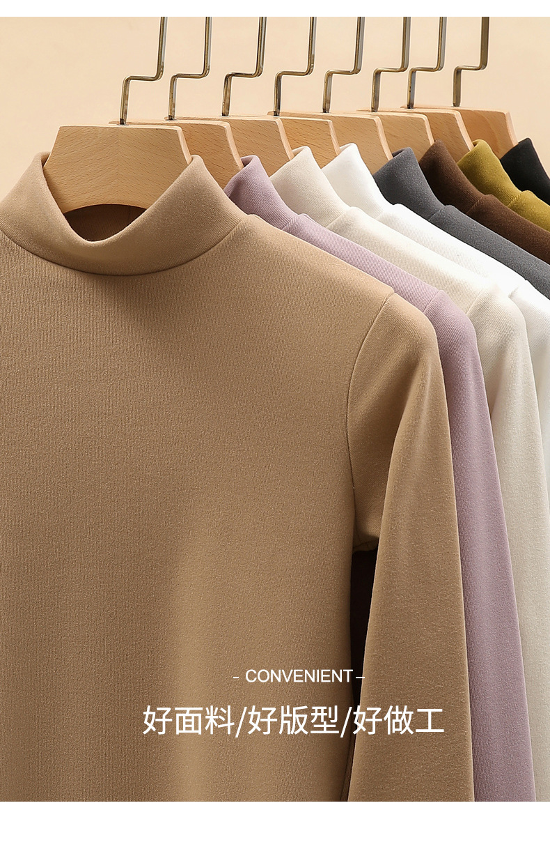 H319半高领双面德绒打底衫女春秋款内搭纯色加绒加厚保暖长袖上衣