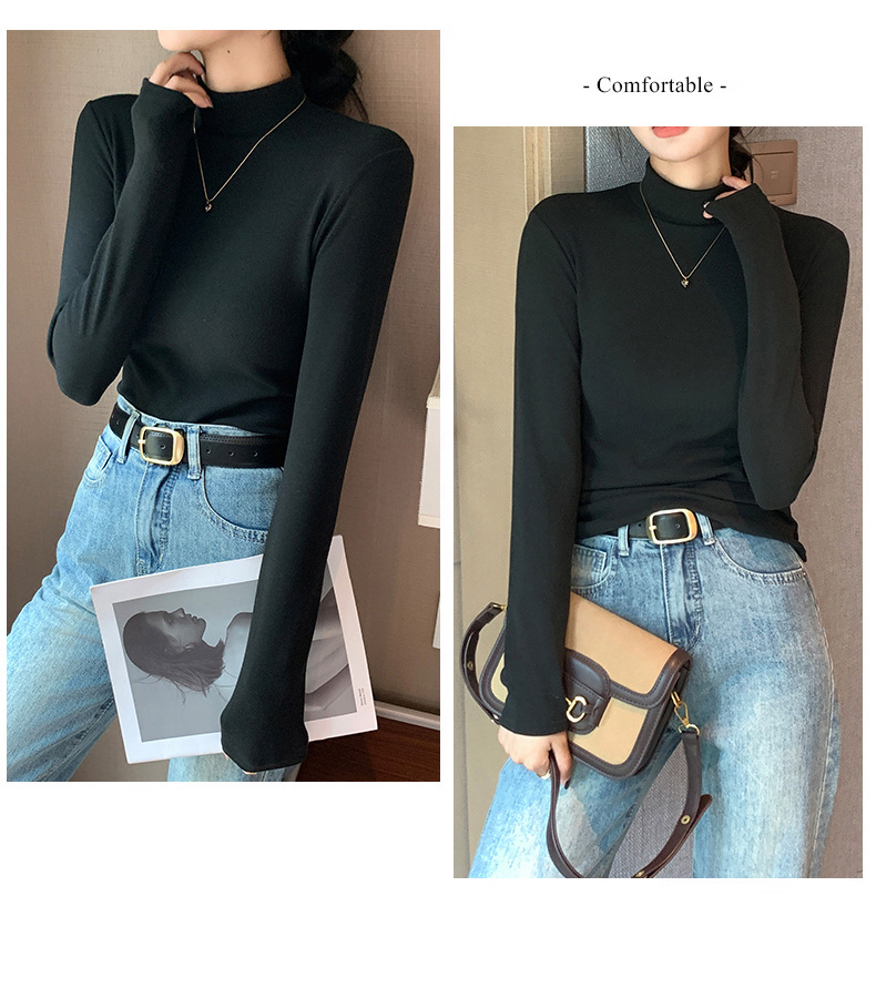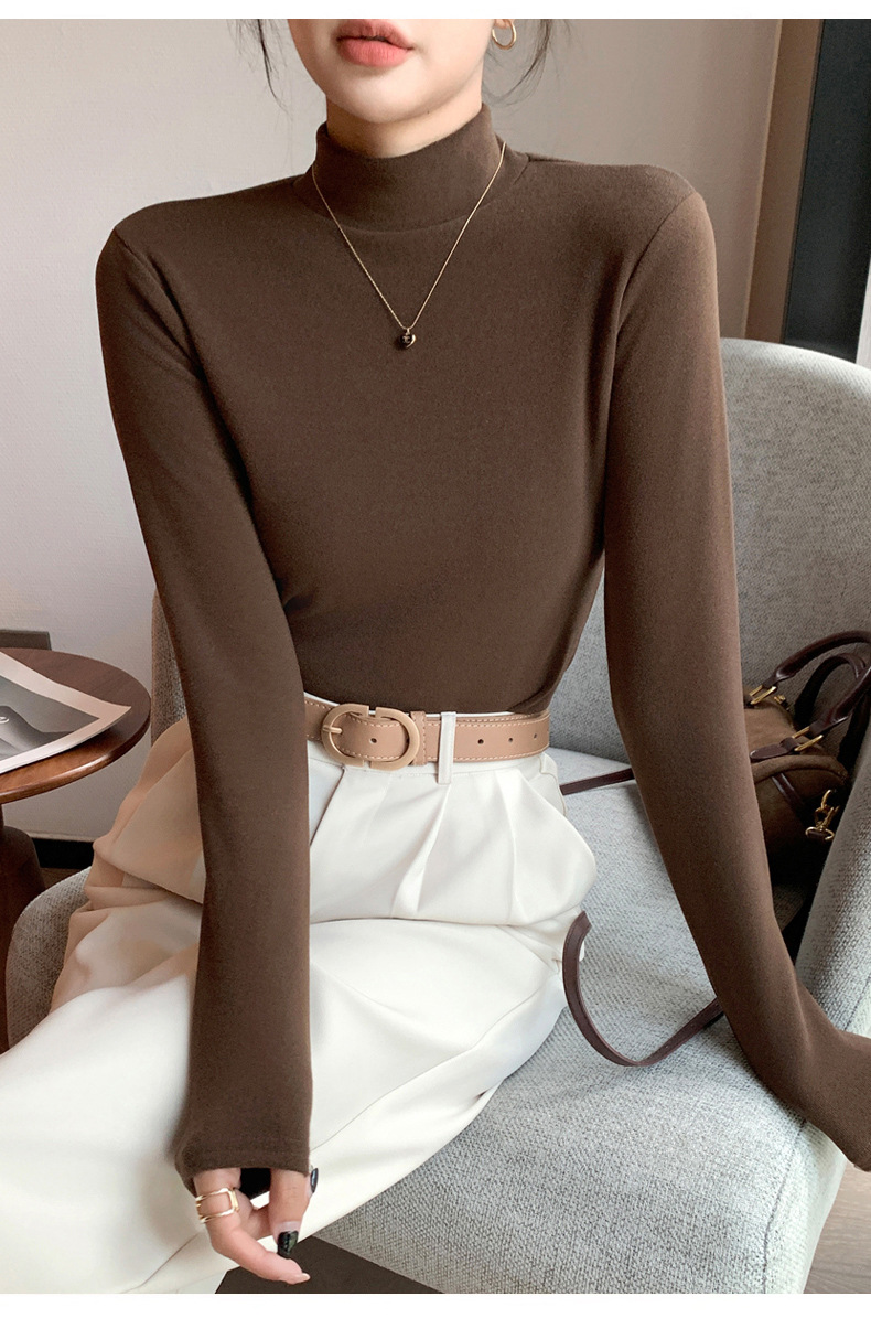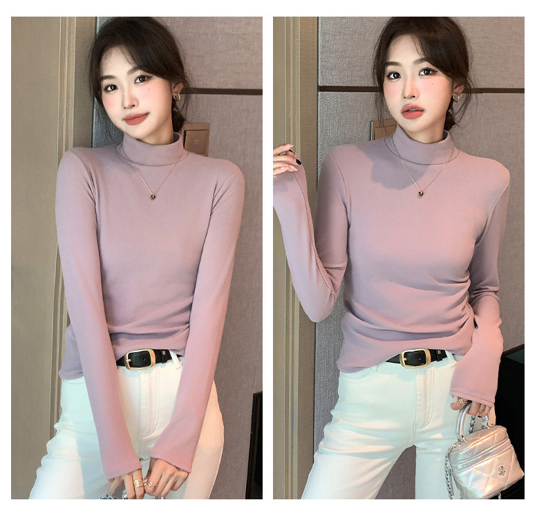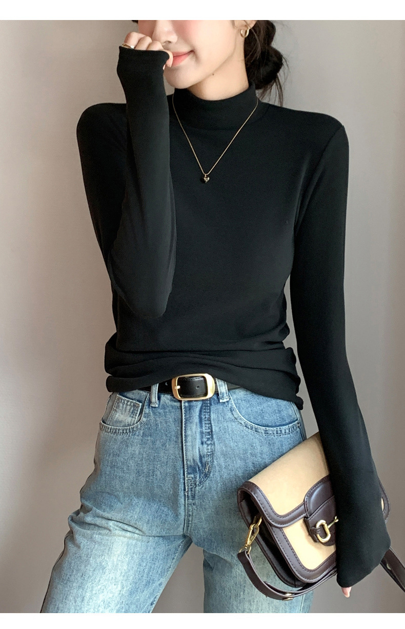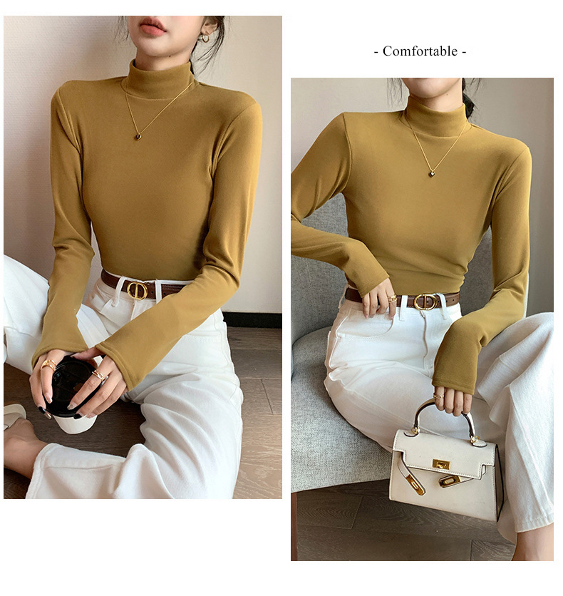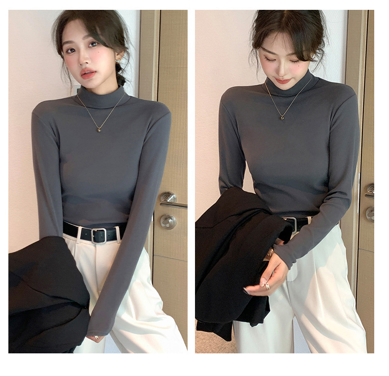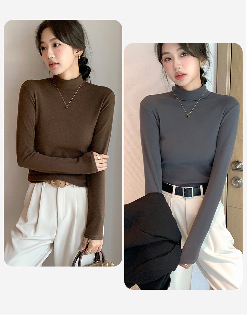 H319半高领双面德绒打底衫女春秋款内搭纯色加绒加厚保暖长袖上衣