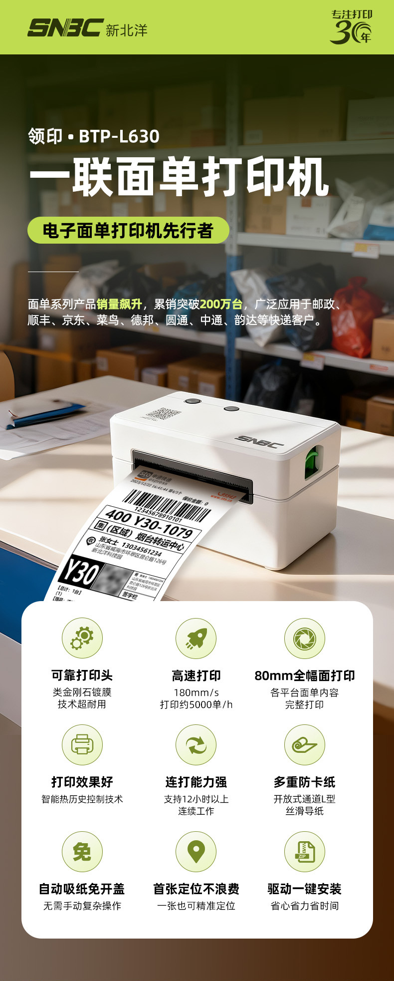 新北洋L630快递单一联单打印机淘宝抖音电子面单打单机热敏标签机