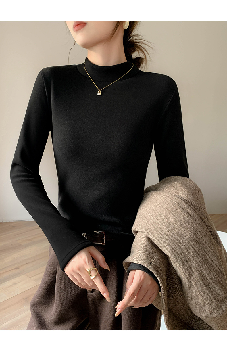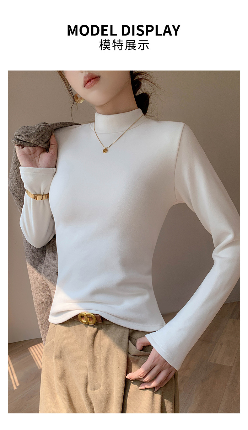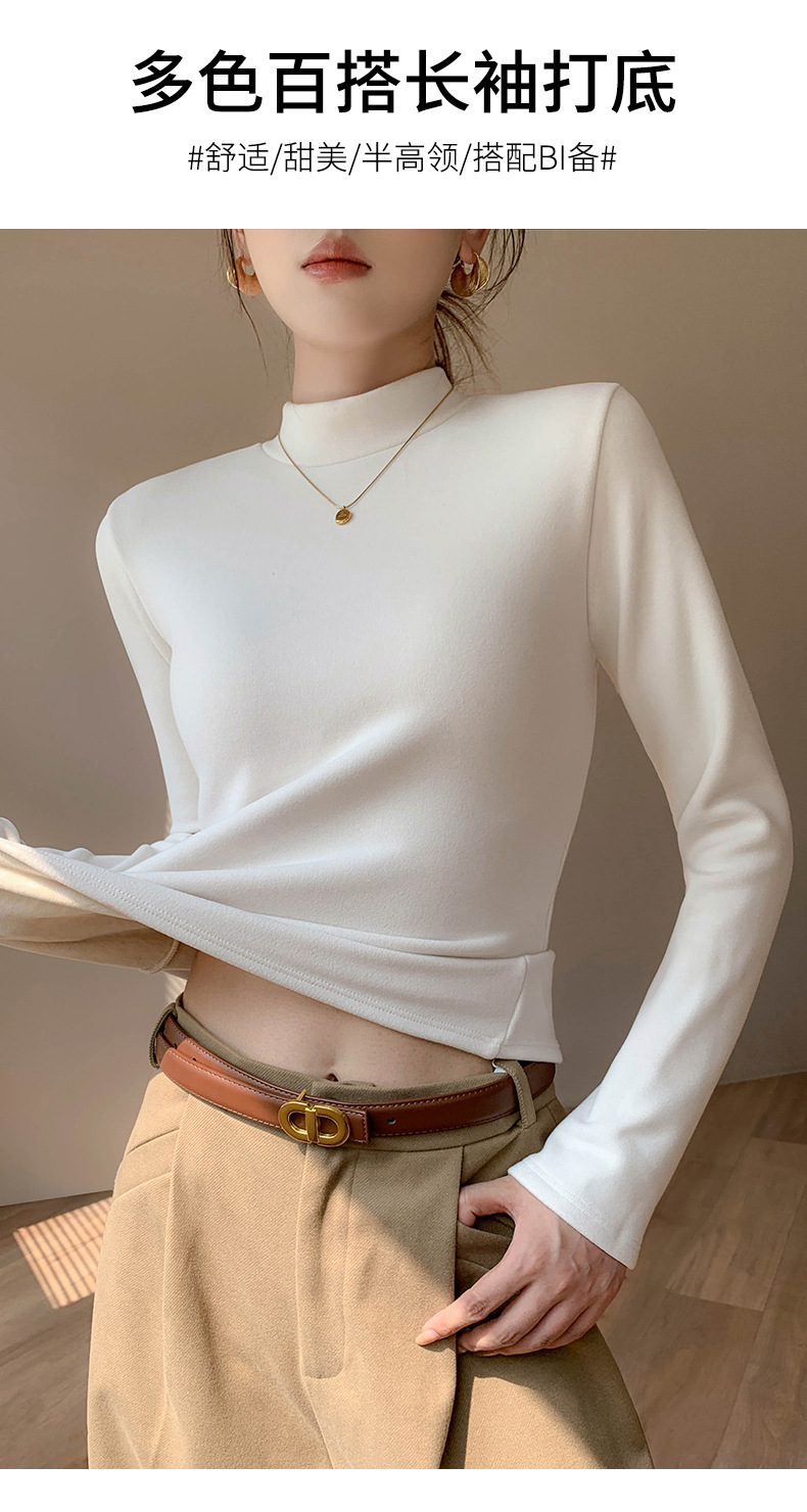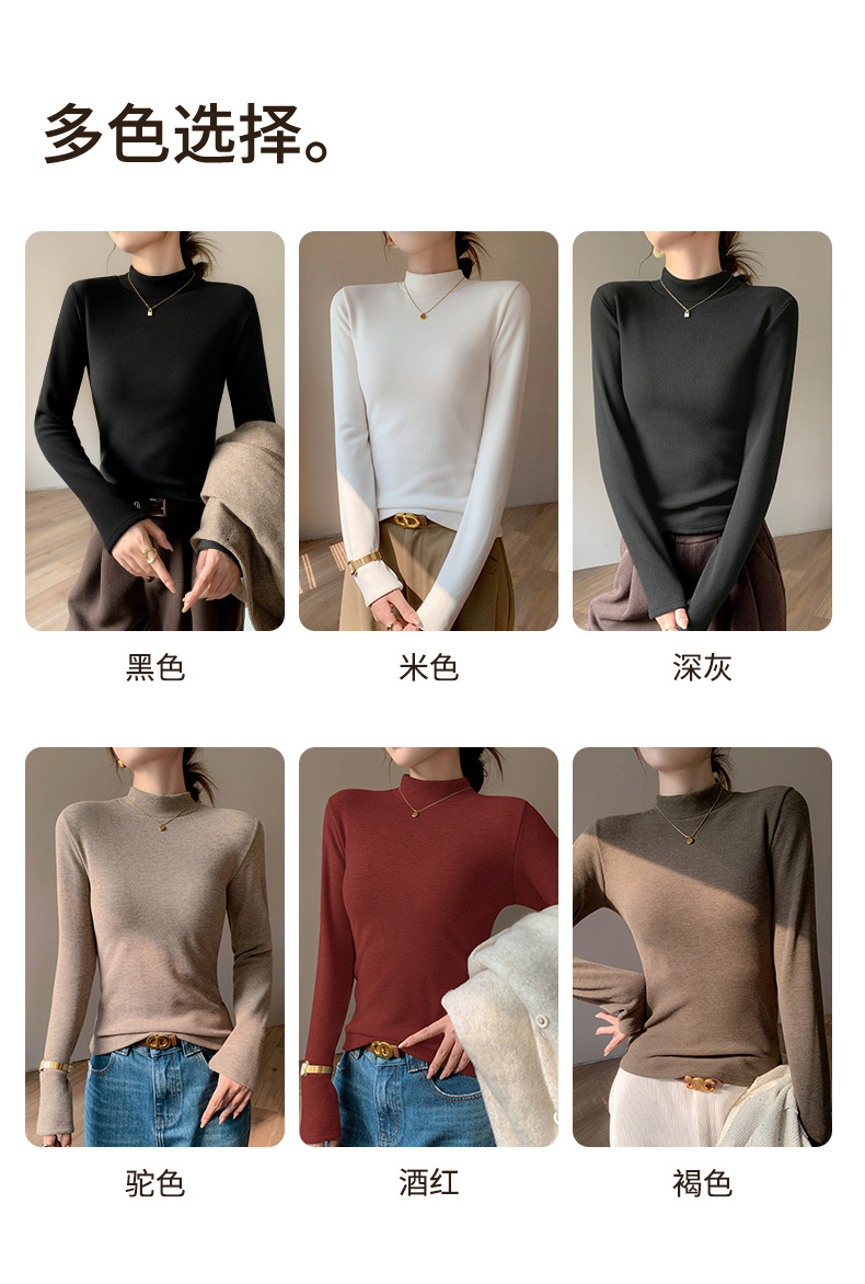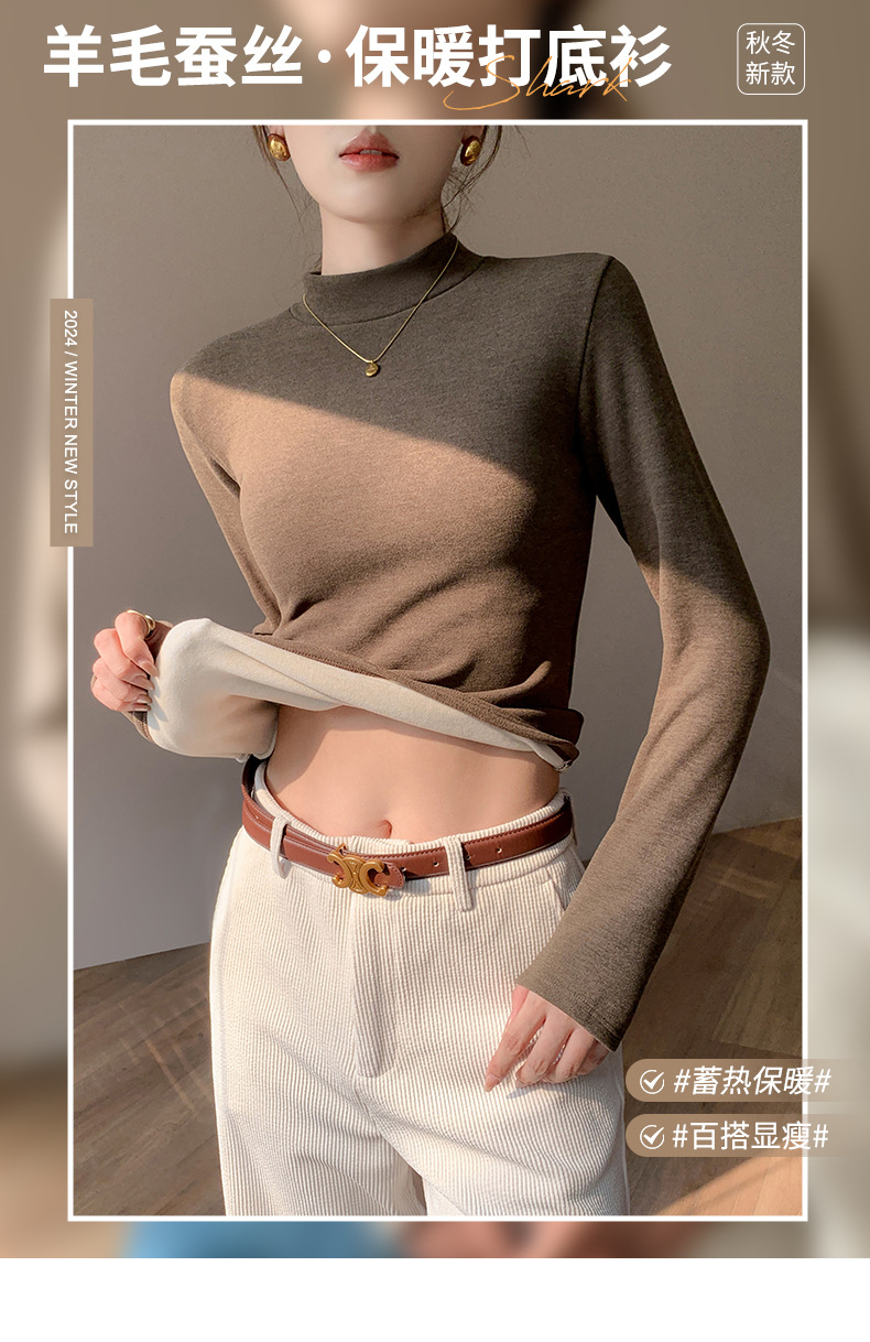 加绒加厚半高领羊绒打底衫女秋冬季桑蚕丝中领内搭纯色保暖上衣
