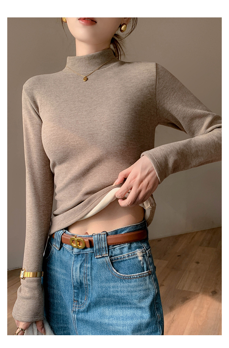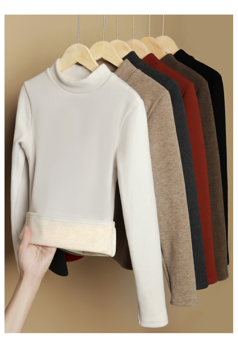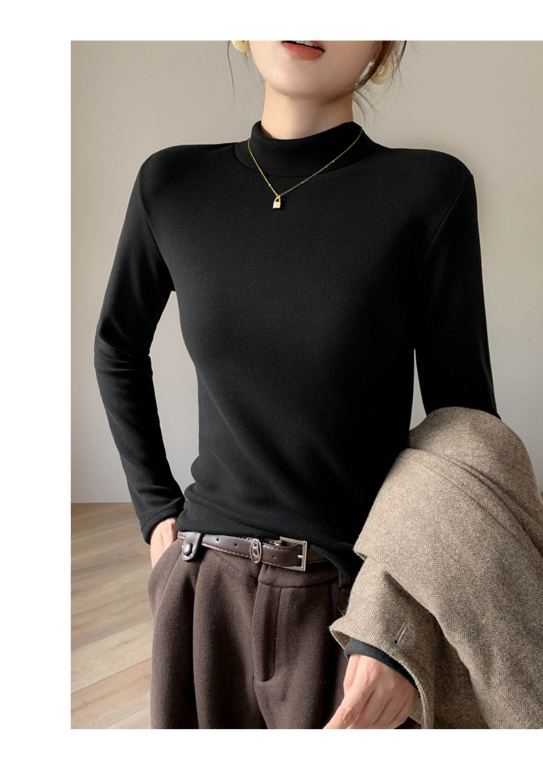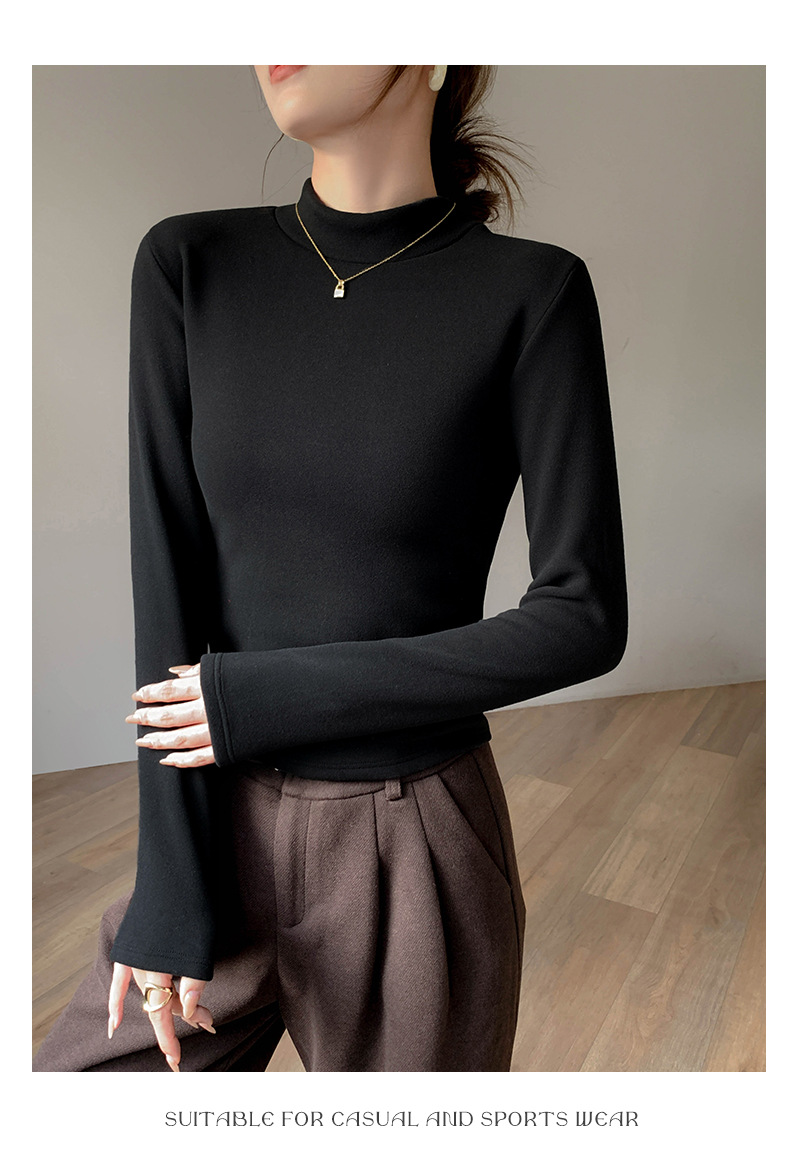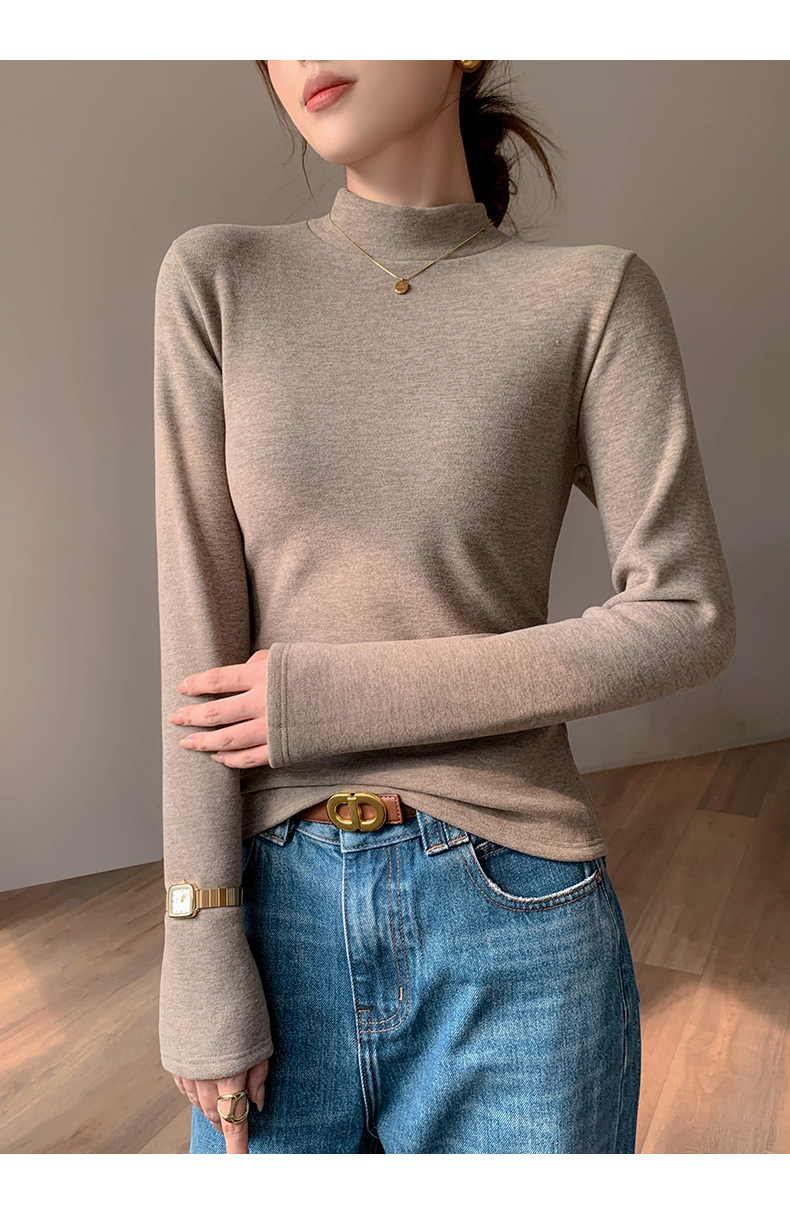 加绒加厚半高领羊绒打底衫女秋冬季桑蚕丝中领内搭纯色保暖上衣