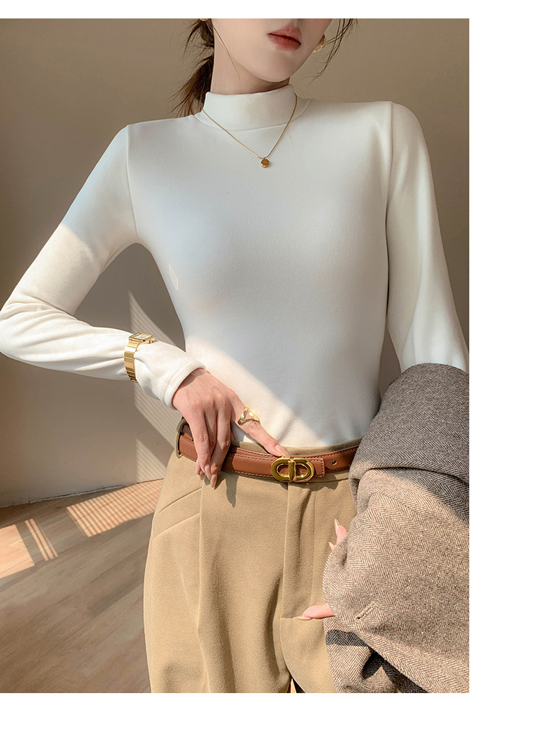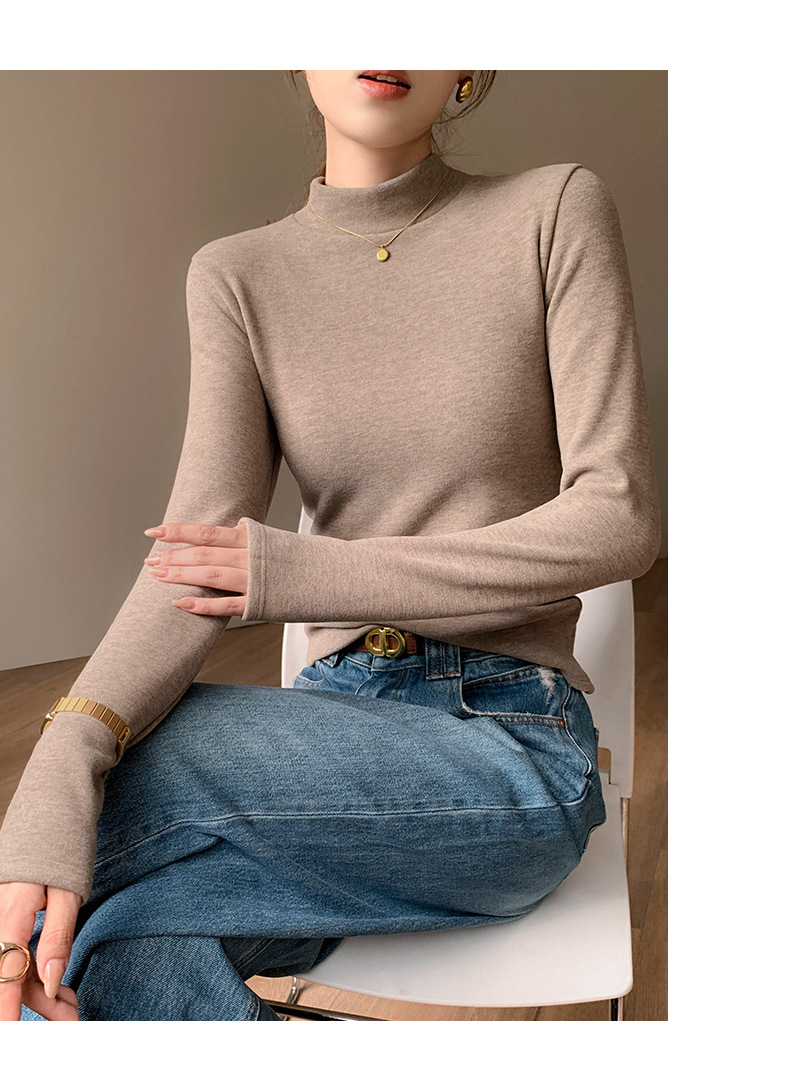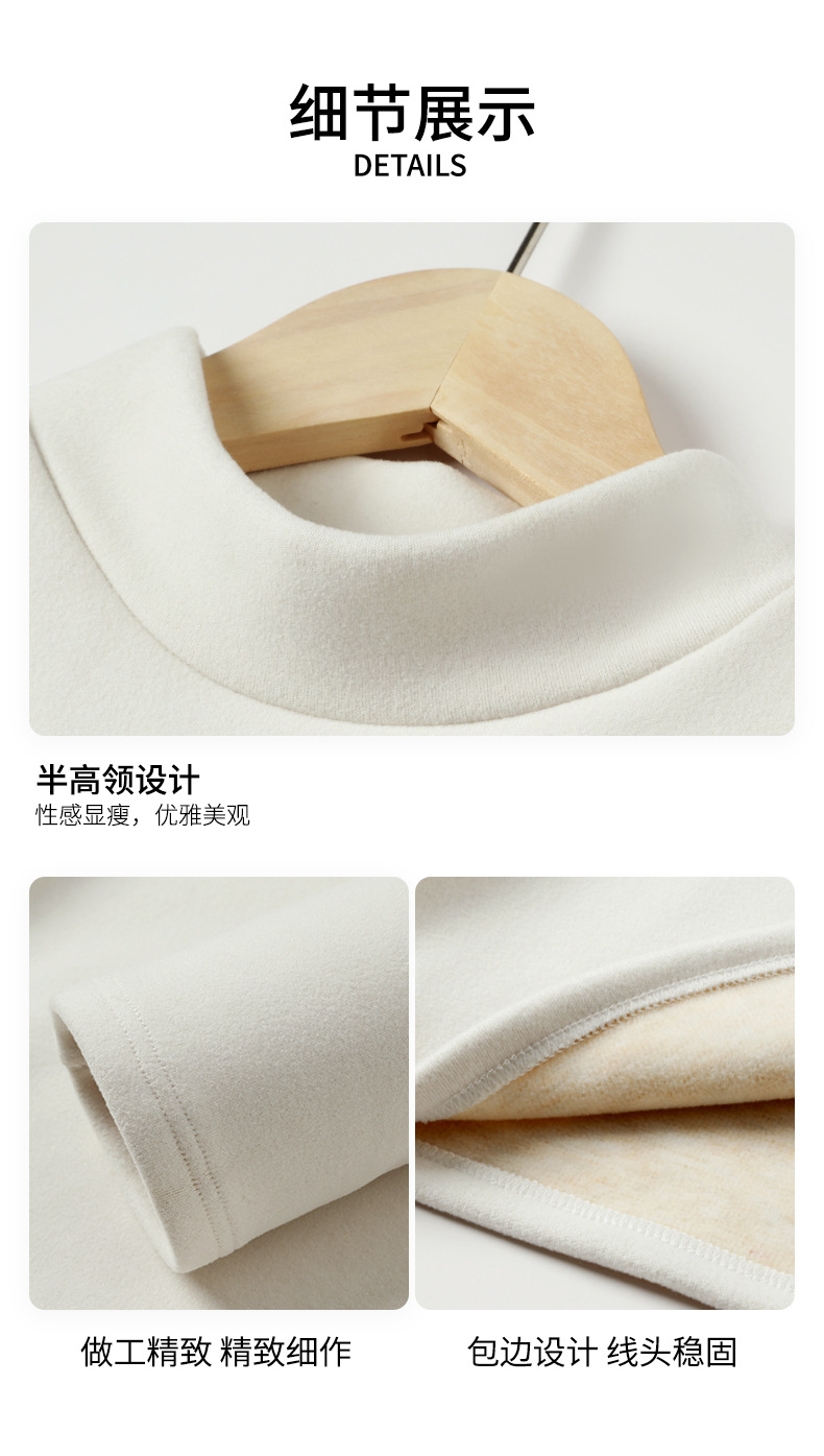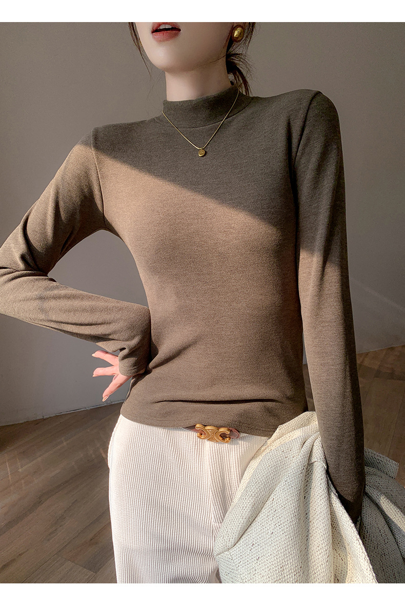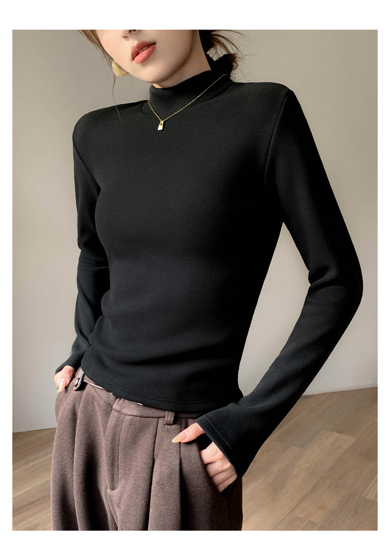 加绒加厚半高领羊绒打底衫女秋冬季桑蚕丝中领内搭纯色保暖上衣