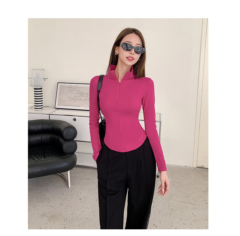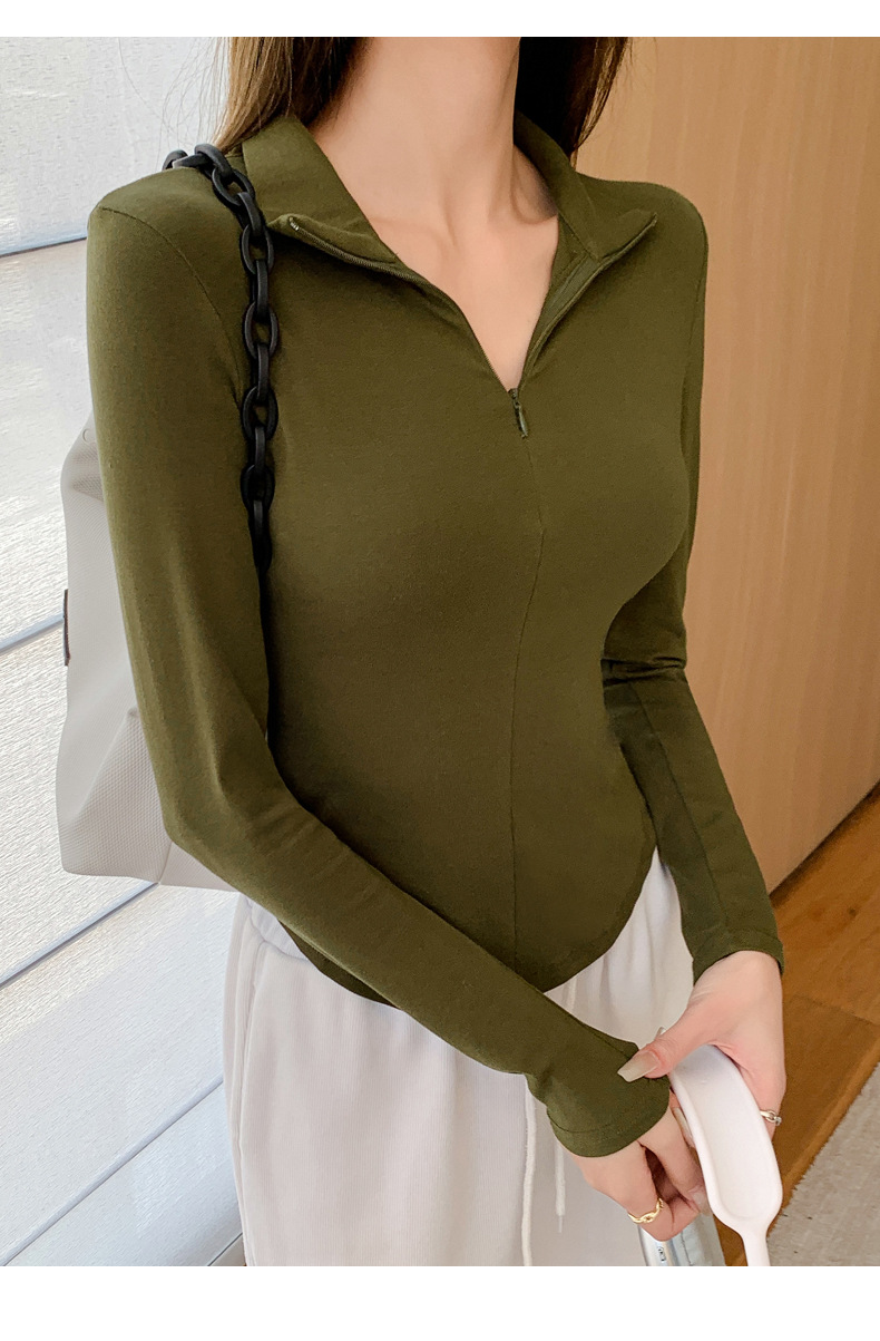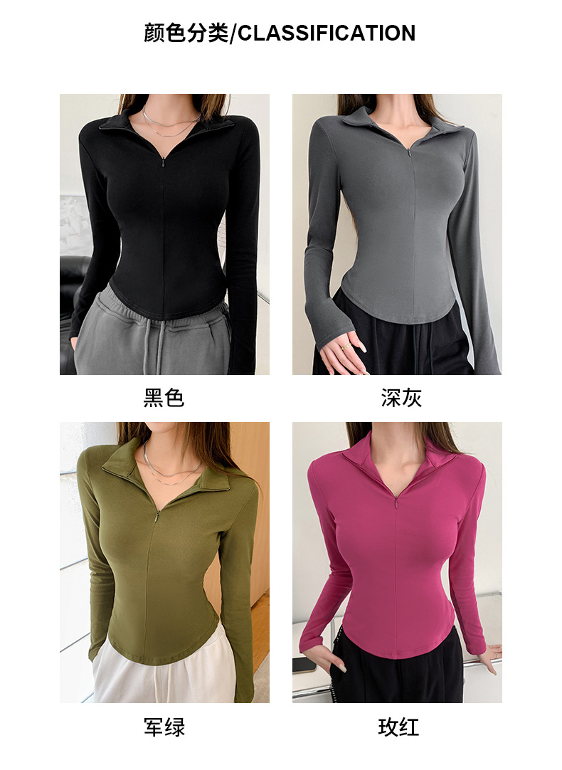 品质严选打底衫女秋季2023新款拉链设计感弧形下摆不规则t恤上衣