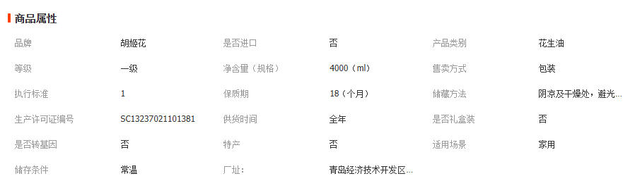 胡姬花 古法小榨花生油4L