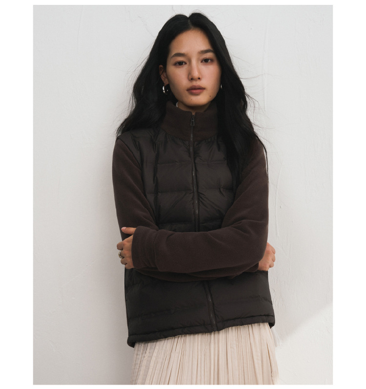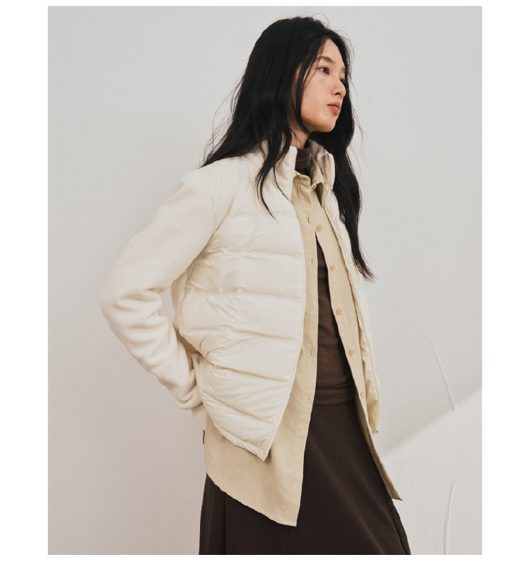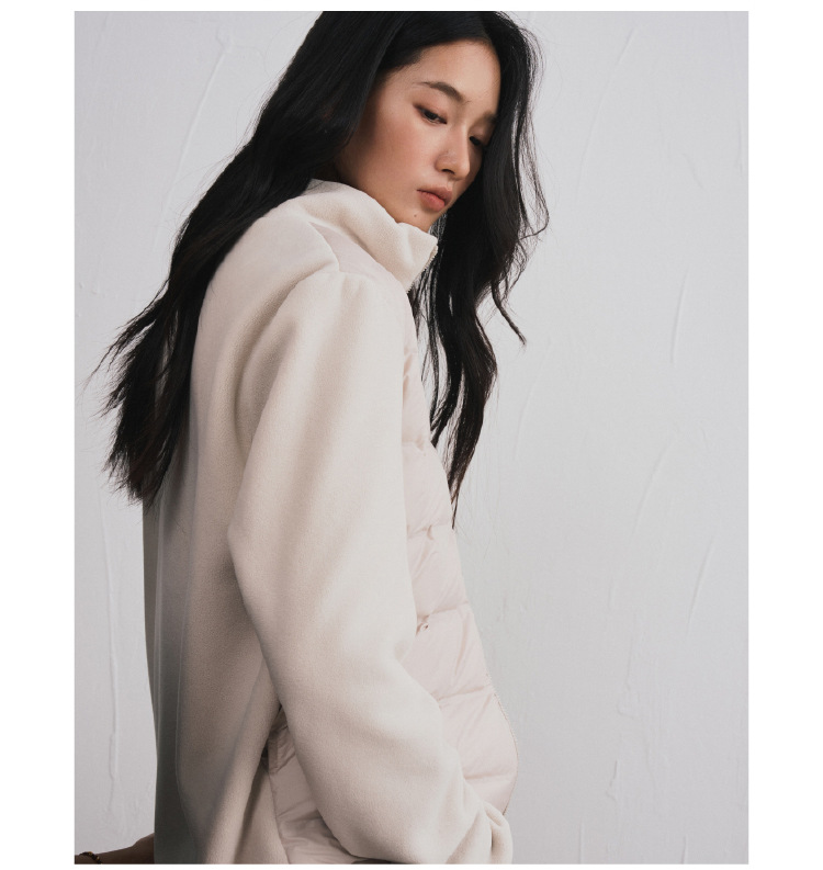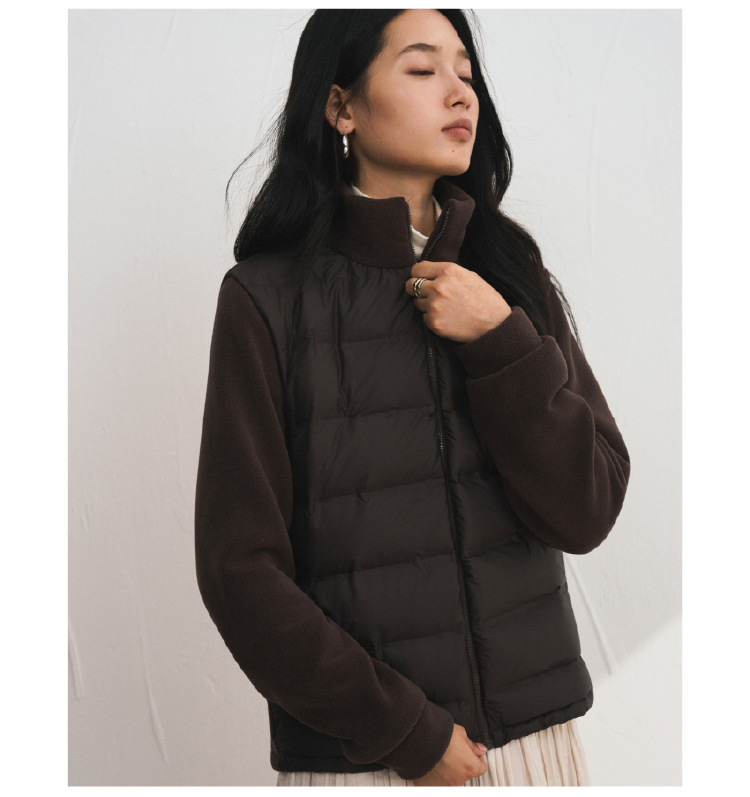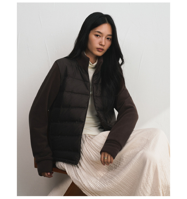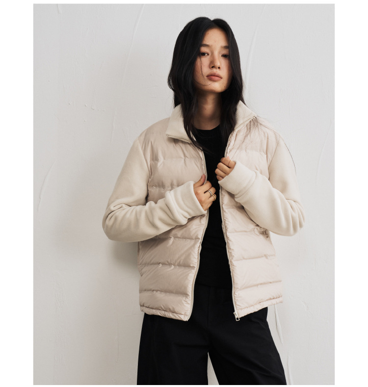 短款摇粒绒羽绒外套女秋冬纯色鸭绒保暖开衫高级感百搭潮流外套